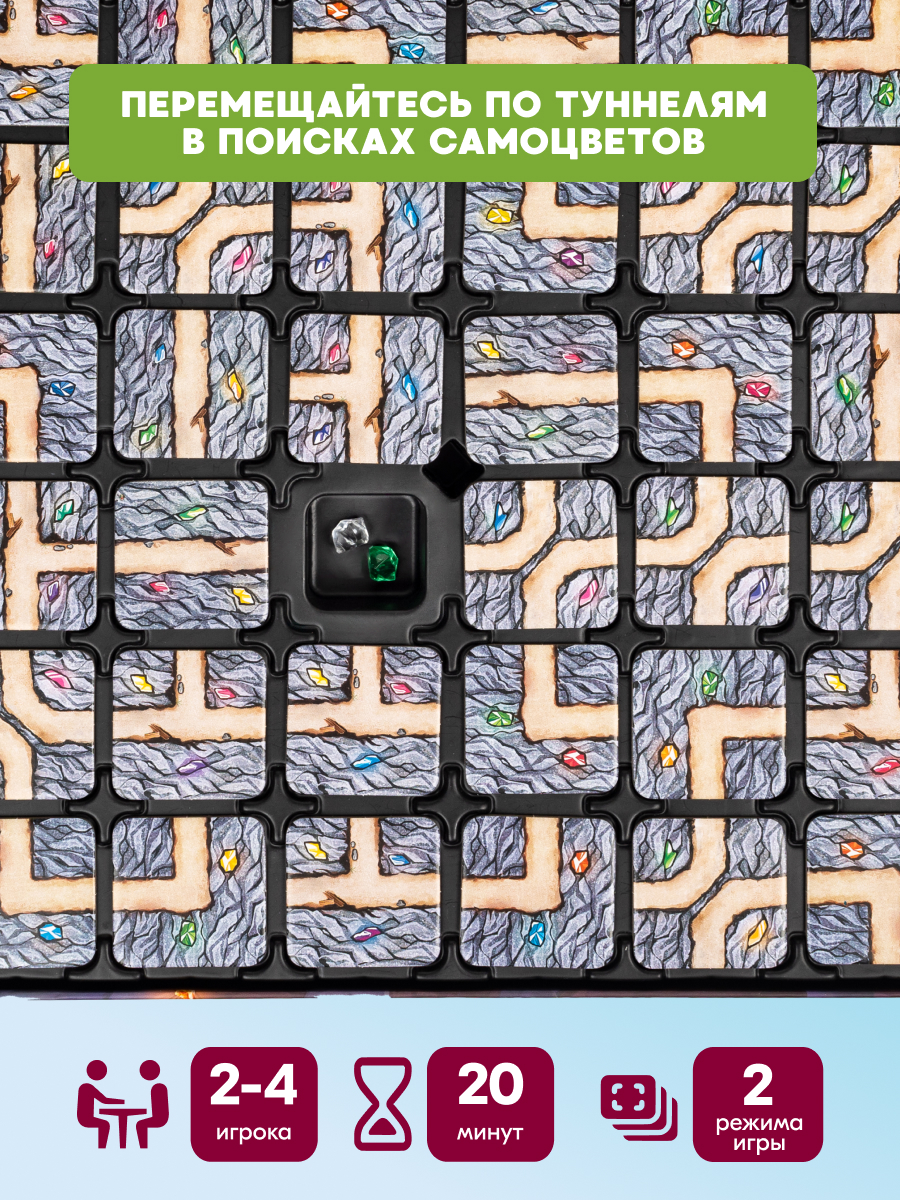 В этой настольной игре есть два режима. В базовом собирать кристаллы можно в любом порядке, он подходит для новичков и начинающих игроков. В продвинутом участникам нужно проявить мастерство и собрать кристаллы в определенной последовательности. Важно помнить, где находятся нужные камни и где уже побывали соперники, так что KINGEMS отлично развивает память, внимание и стратегическое мышление.