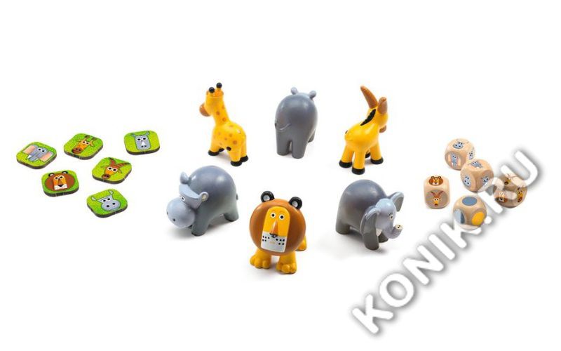 Во время игры участники бросают кубики с разными вариантов цветов и одновременно ищут животного нужного цвета в круге. Победитель зарабатывает жетон. Набрав 6 жетонов, игрок становится победителем.