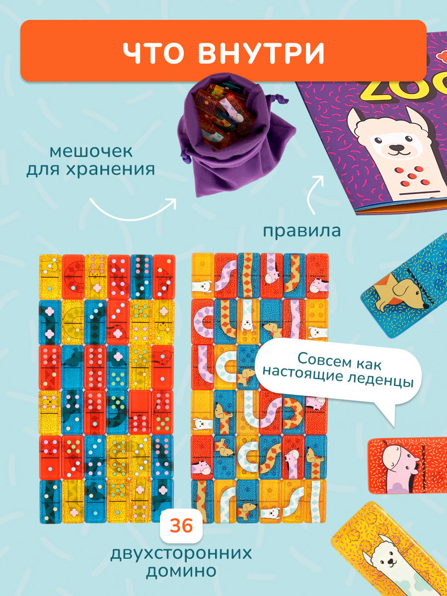 36 двусторонних домино, мешочек для хранения, правила