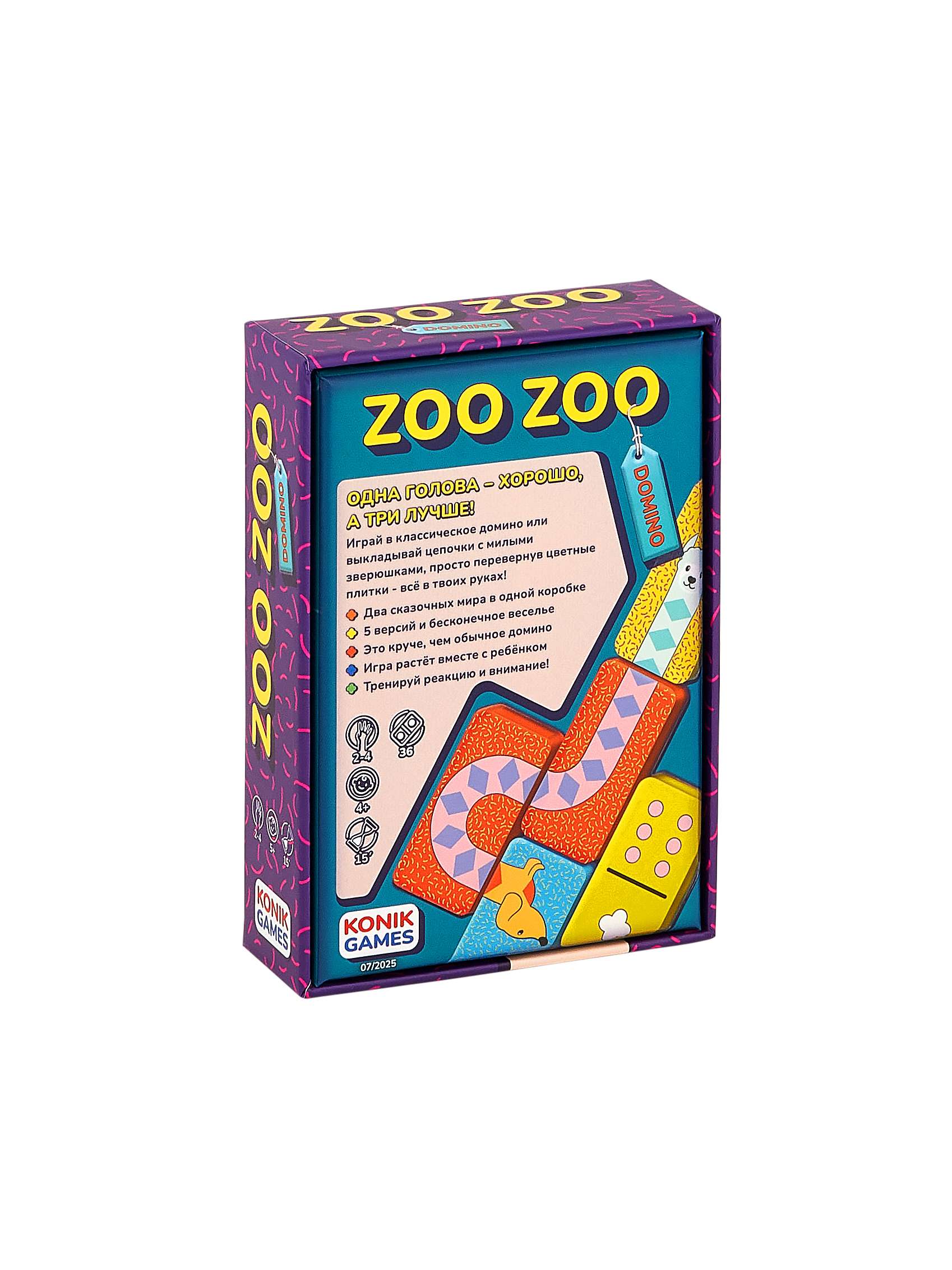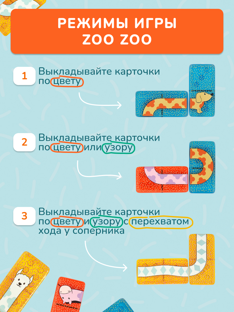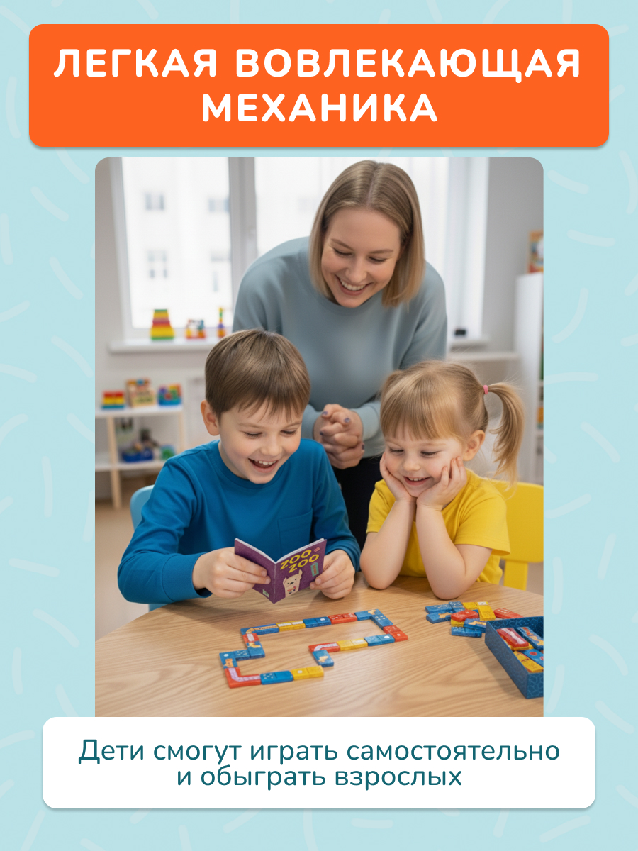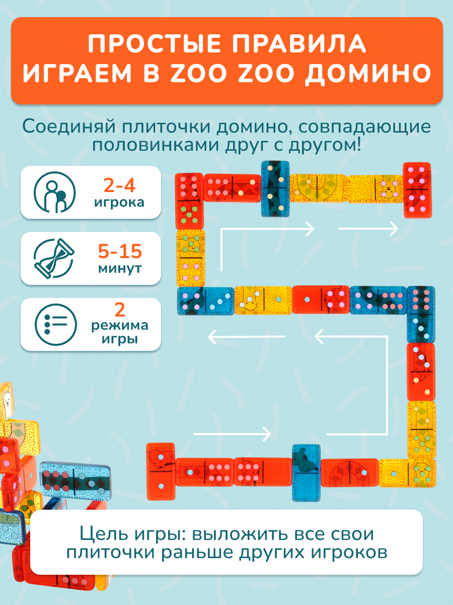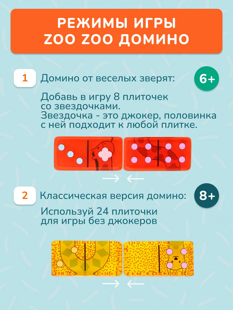 Зу Зу Домино от Konik Games - очаровательная версия детского домино. Кажется, что элементы игры сделаны из разноцветных леденцов. Выкладывайте цепочку домино с забавными зверюшками - ламой, осликом и таксой, или переверните плиточки и играйте в классическую версию игры. В Zoo Zoo Domino 5 игровых режимов - попробуйте их все для разнообразной и веселой развивающей игры!