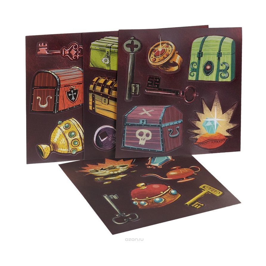 В набор входят карточки с изображениями сокровищ и специальные жетоны, которые нужно правильно разместить на карточках. Игра имеет несколько уровней сложности, что позволяет адаптировать её под возраст и навыки ребёнка. Яркие цвета и интересные изображения на карточках привлекут внимание малыша и помогут ему научиться сопоставлять предметы и их изображения.