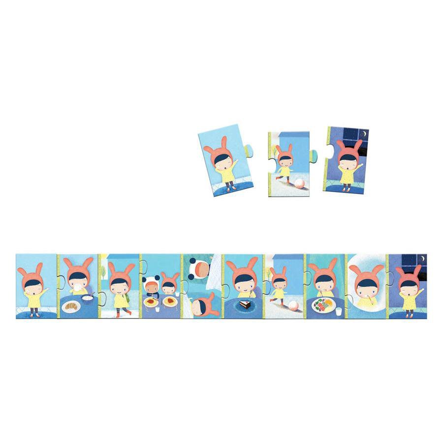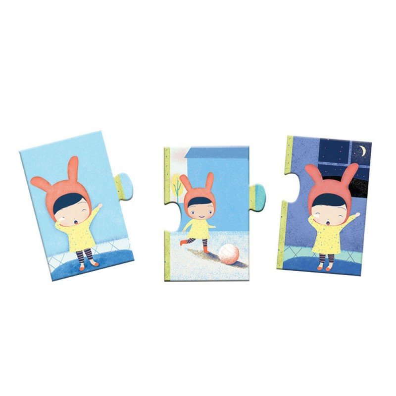 Пазл «Как прошел мой день?» день от французского производителя Djeco (Джеко) — это оригинальный крупноформатная головоломка, которая непременно понравится малышам. Главный герой пазла — милая девочка, которая делится с своими впечатлениями и событиями за день. Ваш ребёнок узнает в игровой манере суточный цикл и обычный распорядок дня детей.