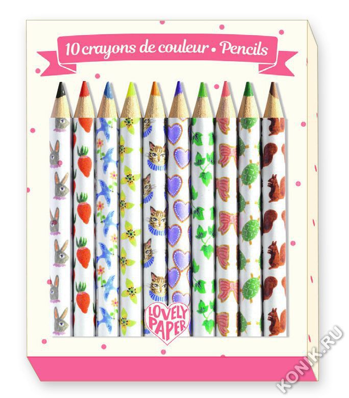 Создавайте свои собственные шедевры с помощью набора из 10 насыщенных цветных карандашей от французского бренда Djeco!