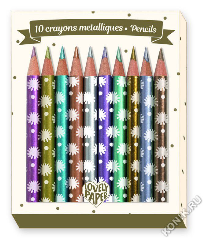 В комплекте карандаши цвета металлик, которые отлично подходят для раскрашивания, рисования и творчества. Сами карандаши имеют интересный металлический отлив, а также они украшены милыми паттернами.