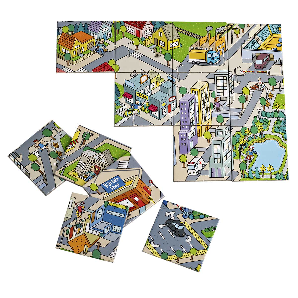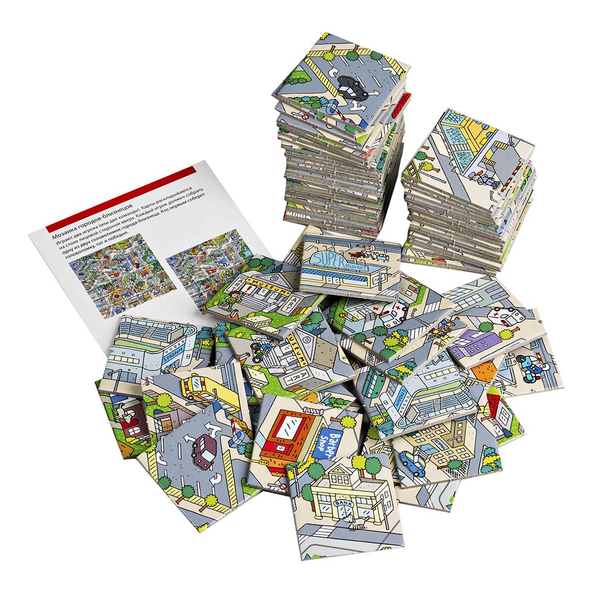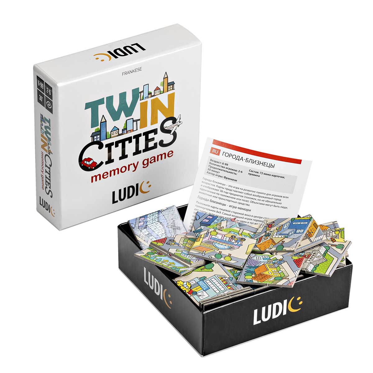 «Города-близнецы» — увлекательная карточная игра на развитие памяти. В игре используются специальные карточки с изображениями различных предметов, на которых представлены воображаемые города. В игре есть 2 режима: игра-мемори и мозаика. Для начинающих игроков отлично подойдет вариант мемори, где побеждает тот, кто соберет больше всех карточек. Для опытных игроков — мозаика, где победителем становится тот, кто первым соберет мозаику города.