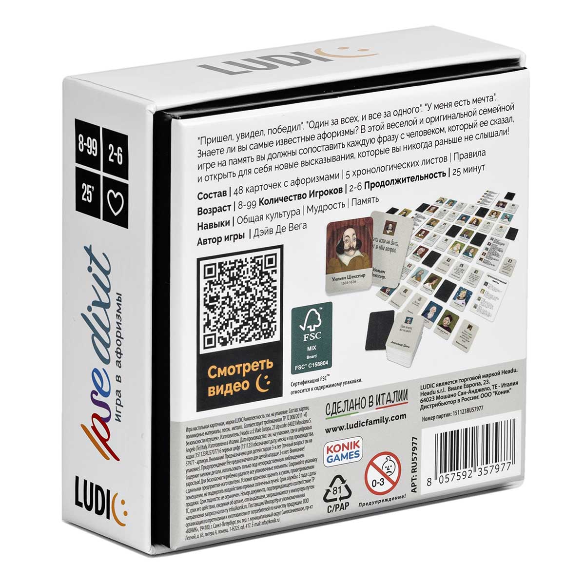 «Игра в Афоризмы» – это обучающая игра, направленная на развитие памяти и эрудиции. Она подходит для всей семьи и подарит веселое и приятное времяпрепровождение. По правилам игры участникам нужно сопоставить карточки с афоризмами с карточками их авторов. Кто произнес: «Пришел, увидел, победил»? А кому принадлежит фраза: «Один за всех, и все за одного»? Уверены, что знаете? Тогда скорее включайтесь в игру! В набор входит 48 карточек с афоризмами и их авторами, которые помогут расширить кругозор и узнать много крылатых выражений.