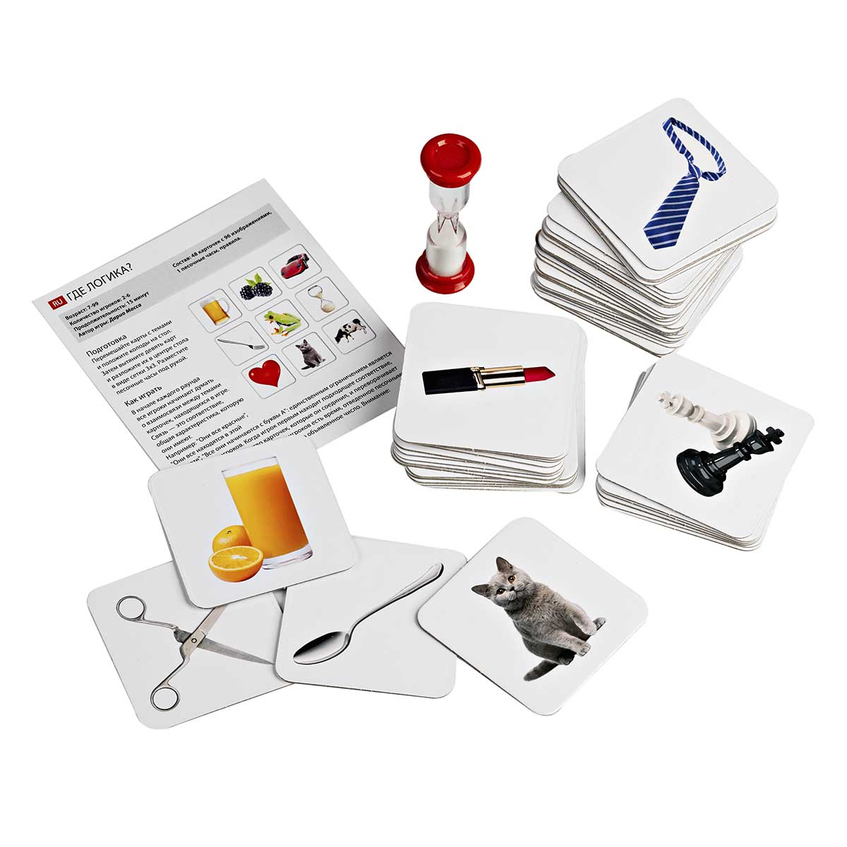 «Где логика?» — это увлекательная настольная игра, которая бросит вызов вашей логике и креативности. В набор входят 48 карточек с 96 изображениями. В начале игры на поле выкладываются 9 карточек в виде сетки 3х3. Игрокам предстоит объединить различные предметы, изображенные на карточках, по определенным признакам, чтобы сформировать максимально длинные логические цепочки. Игрок, который составит самую длинную цепочку и объяснит её логическую связь, выигрывает.