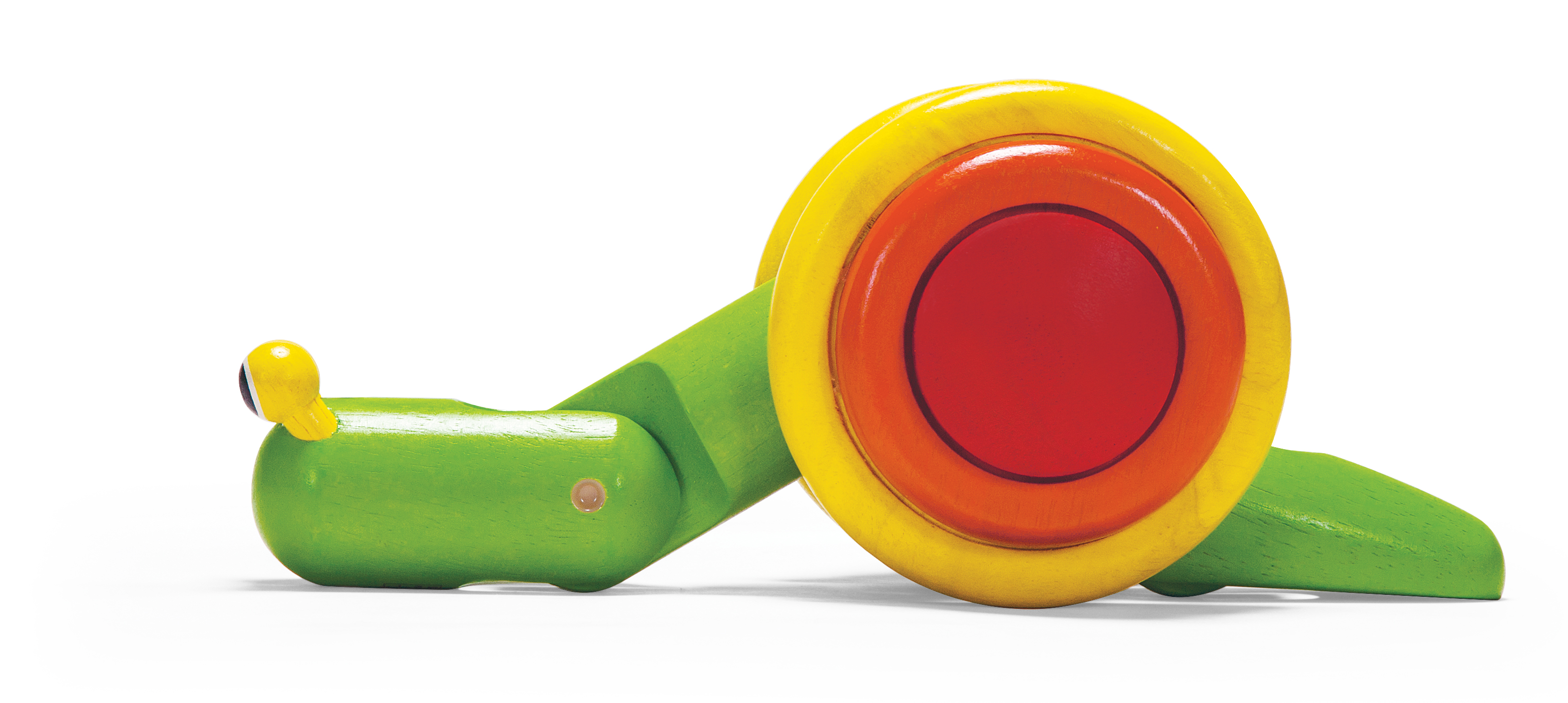 Игрушка выполнена из каучукового дерева с использованием нетоксичных красок и специально изготовлена с закругленными краями, чтобы избежать вероятности травмирования. Эта вытягивающаяся улитка была номинирована на приз за дизайн в Германии (2004 г.), а также получила награды «Хорошая игрушка» в Тайланде и Японии.