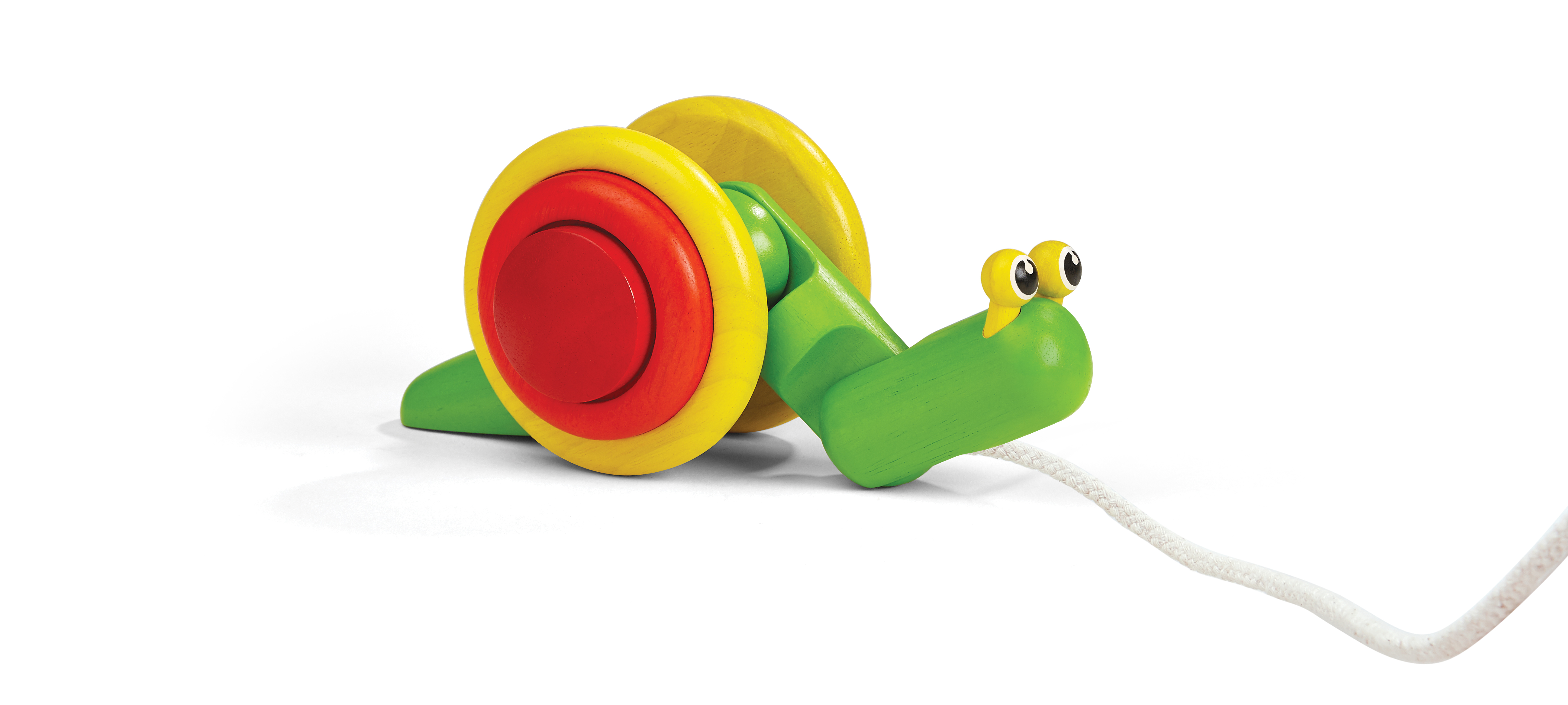 Каталка «Улитка» от PlanToys – идеальный вариант для первых шагов малыша. Если потянуть за веревочку, улитка начинает забавно двигаться. Каталка станет отличным компаньоном для прогулок и поможет ребенку развить зрительно-моторную координацию, чувство равновесия и моторику.