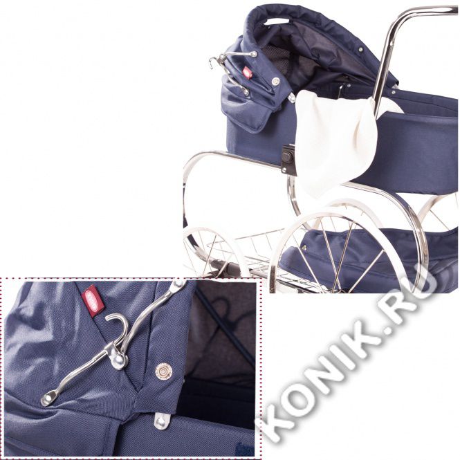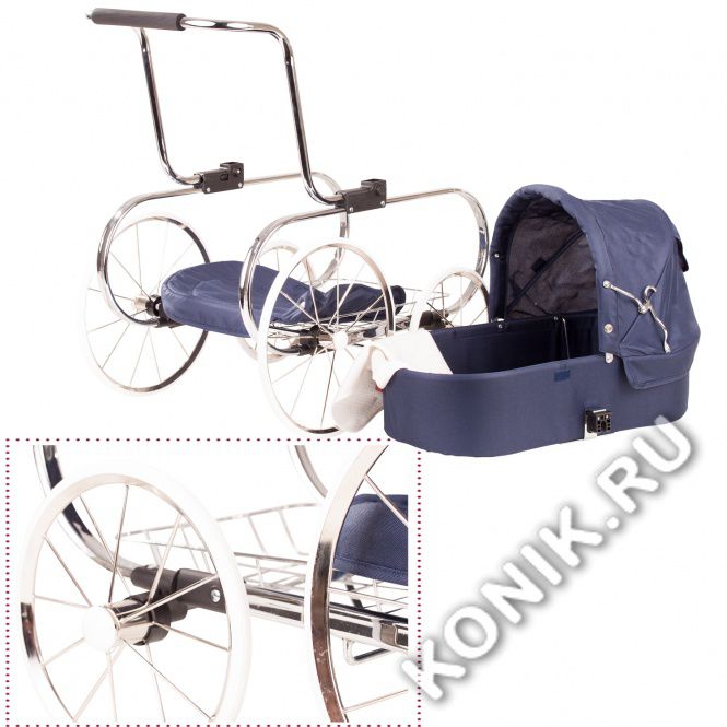 Коляска четырехколесная, синяя в винтажном стиле