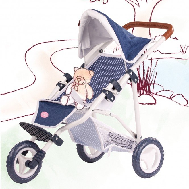 Коляска трёхколёсная, с кожаной ручкой, синяя