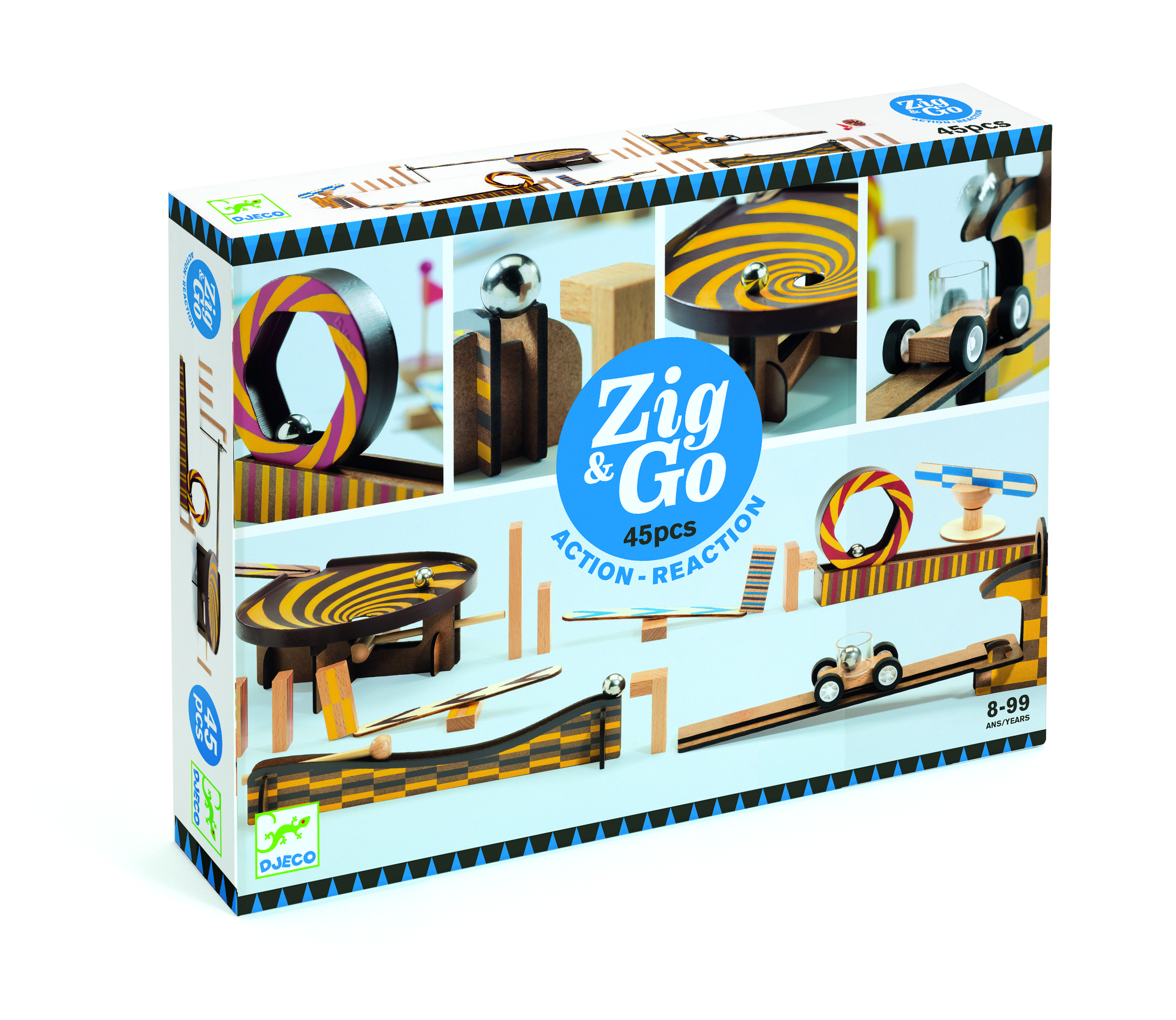 Djeco представляет Zig & Go, деревянную строительную игру цепных реакций, требующую тщательного мышления. Дети копируют 3 дизайна в буклете с инструкциями, чтобы построить уровни, или придумывают свои собственные — возможности безграничны! Эта игра предназначена для детей от 7 лет и старше, и все наборы в коллекции совместимы, для еще более изобретательных уровней действия-реакции!
