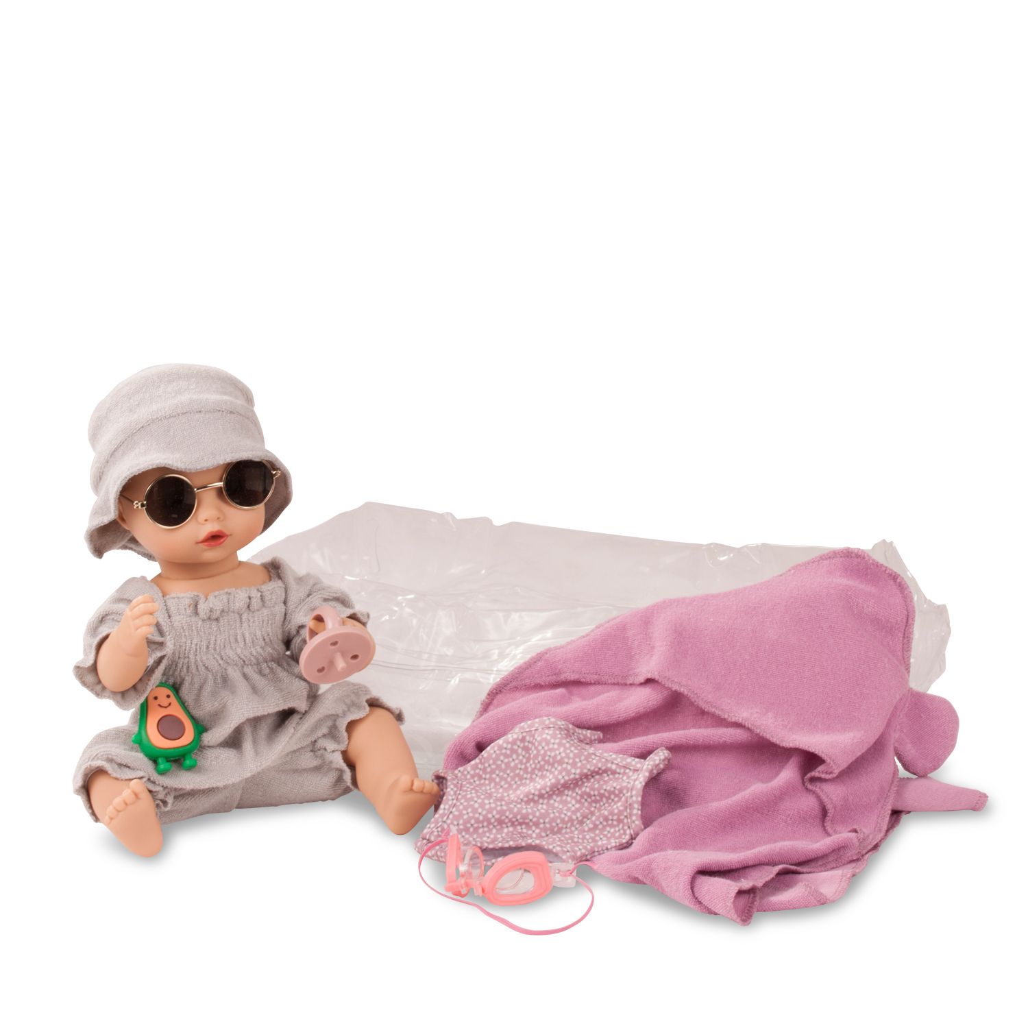 Sleepy Aquini — это пупс, который станет настоящим другом ребенку. Рост куклы 33 см. Тело пупса выполнено из винила: игрушка прочная и подвижная. Глаза Sleepy Aquini закрываются при укладывании. Это создает ощущение, что кукла действительно спит, от чего игра с ней становится еще более реалистичной и увлекательной. Кроме того, куклу можно купать, поить из бутылочки и даже сажать на горшок.