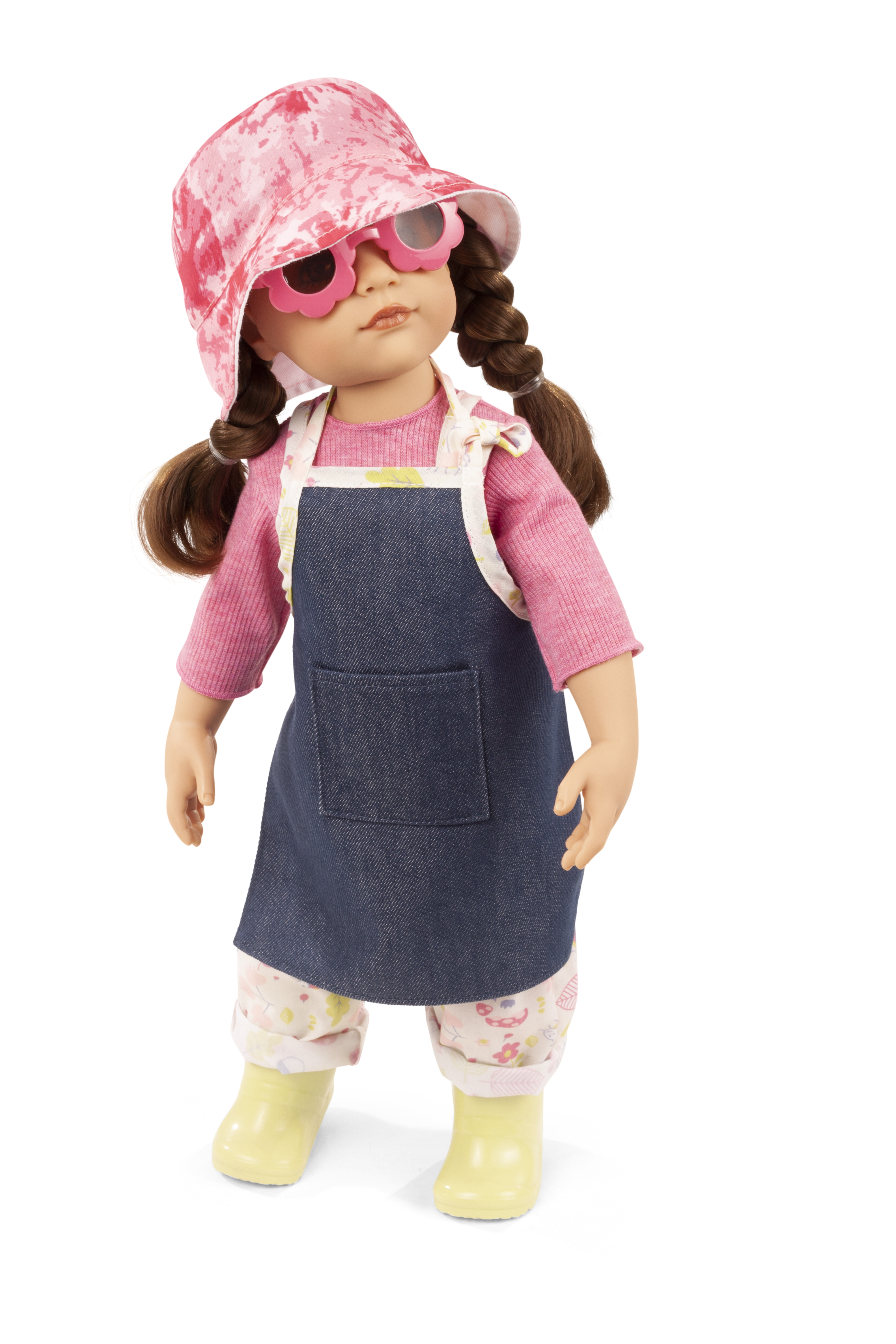 Коллекционная кукла Ханна от немецкого бренда GOTZ высотой 50 см изготовлена из материалов премиального качества. В комплект входят кукла, лонгслив, полукомбинезон, панама, солнцезащитные очки, сапоги и фартук. Игрушка выполнена с точной детализацией и сконструирована в соответствии с естественными пропорциями тела ребенка. У куклы подвижные суставы, что позволяет менять ее позы, одевать, раздевать, укладывать спать и усаживать ее за стол.