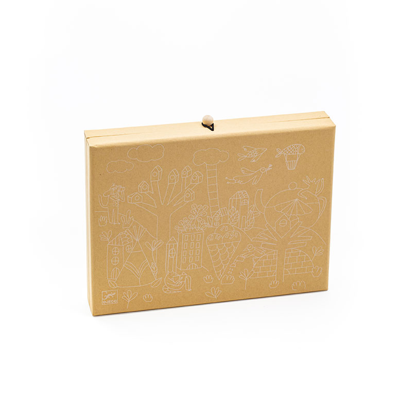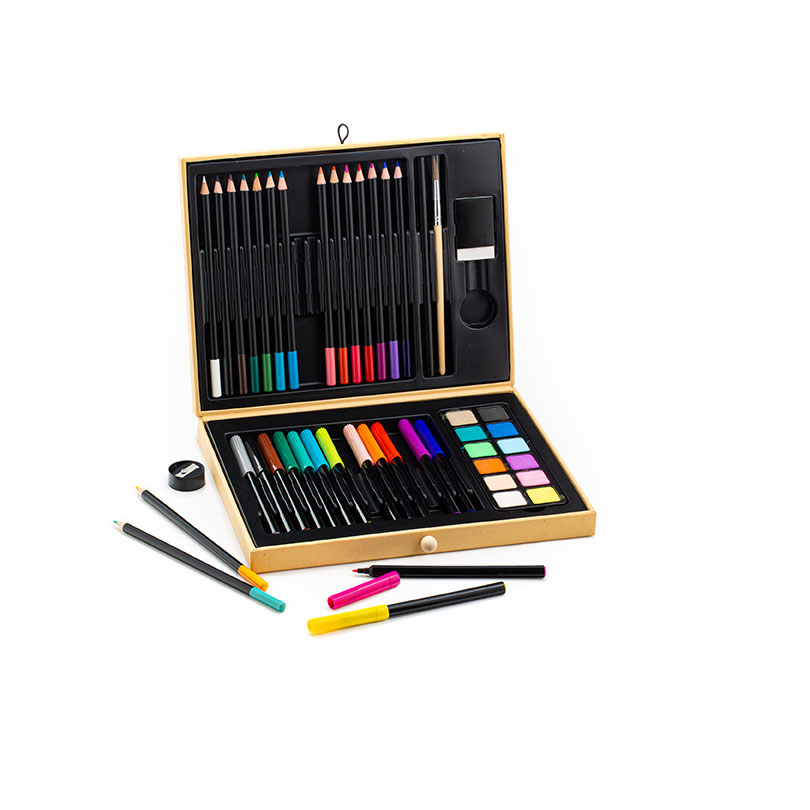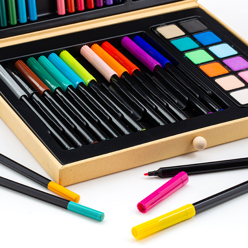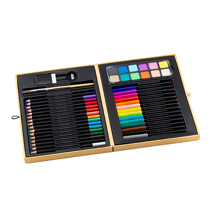 Компактный, переносной футляр, содержащий все необходимое для раскрашивания, рисования и рисования. Грубая крафтовая бумага снаружи футляра имеет дизайн, который можно раскрасить для создания индивидуального вида. Отличный подарок для начинающих юных художников!