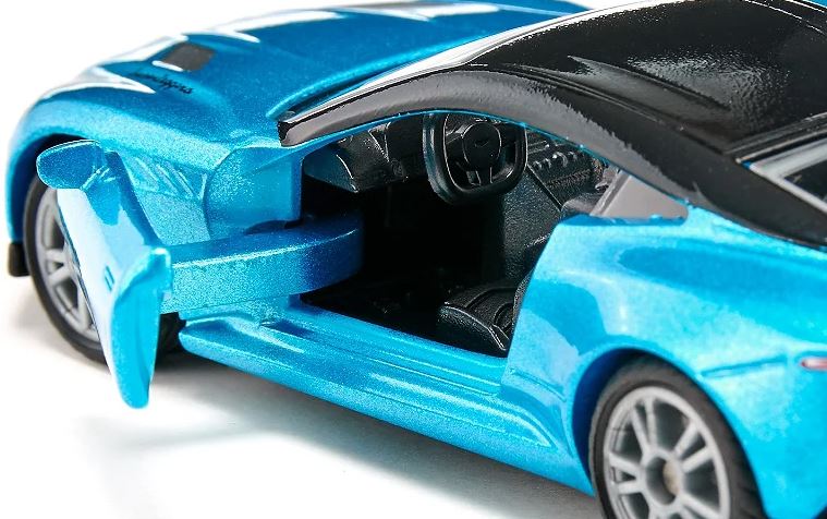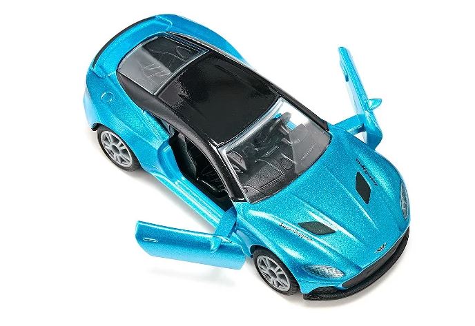 Коллекционера особо обрадует шикарный металлический кузов, открывающиеся дверцы, спортивные диски с резиновыми шинами, а чудесный небесный цвет машины заслуживает отдельного внимания.