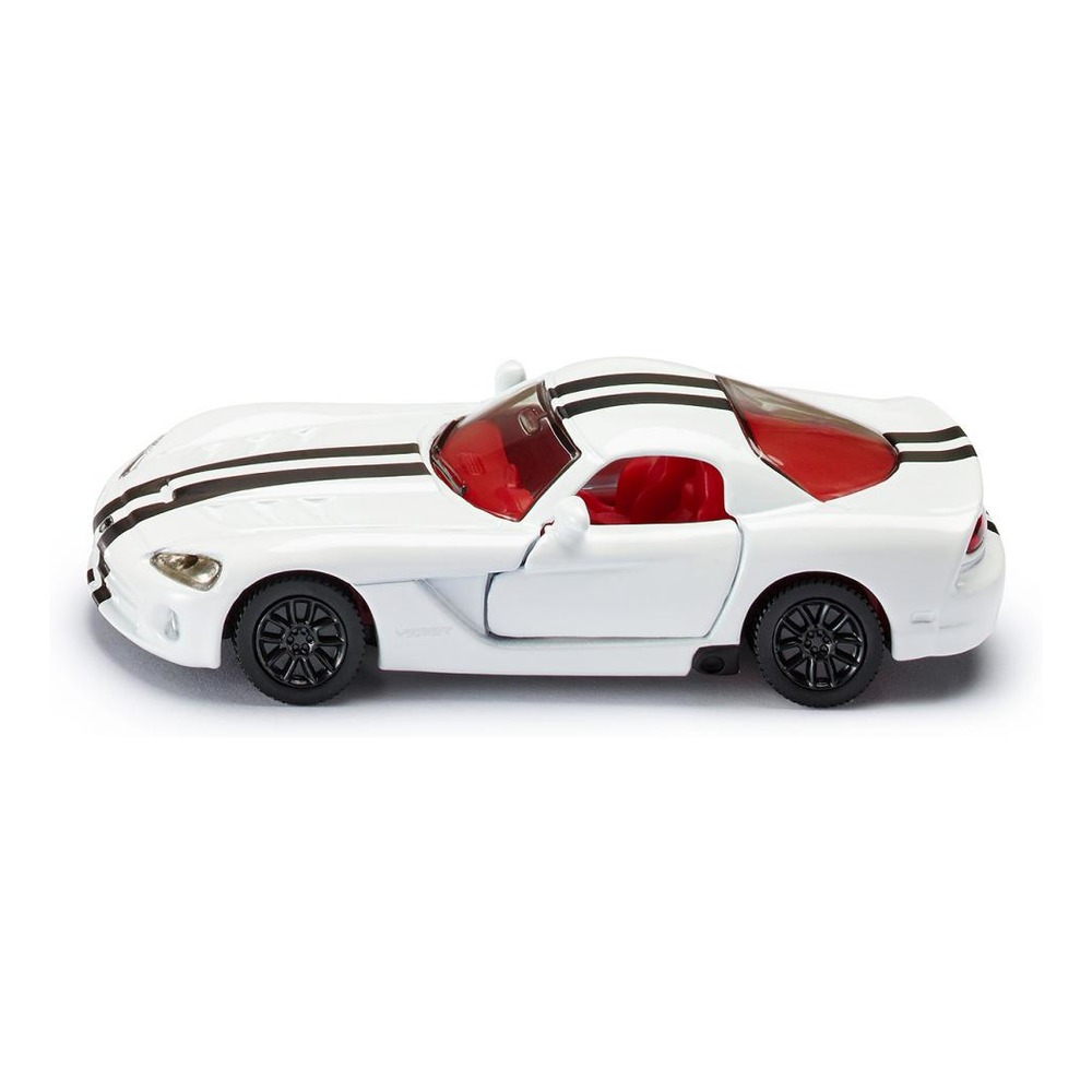 Модель SIKU - Dodge Viper выполнена из ударопрочного металла. Боковые стекла, как и заднее с лобовым сделаны из прозрачного пластика, колеса могут вращаться.Дверцы машинки открываются, поэтому можно изучить салон автомобиля с сиденьями и приборной панелью. Колеса имеют резиновые покрышки. Размер модели 1:55.