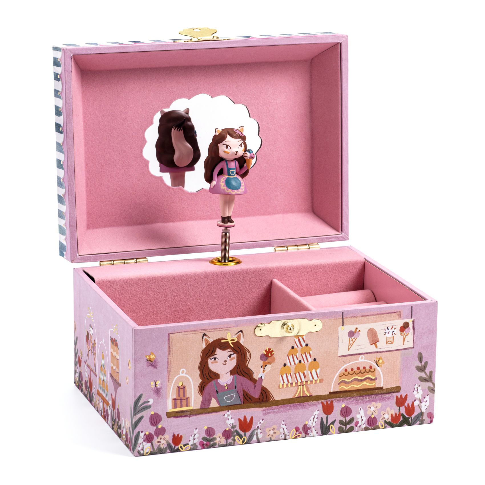Ice Cream Melody - красивая музыкальная шкатулка для хранения украшений и секретных мелочей. Поверните ручку, откройте шкатулку, и она оживает: изящно вырезанная лисица превращается, отражаясь в фигурном зеркале, в “Время вишни” Антуана Ренара.