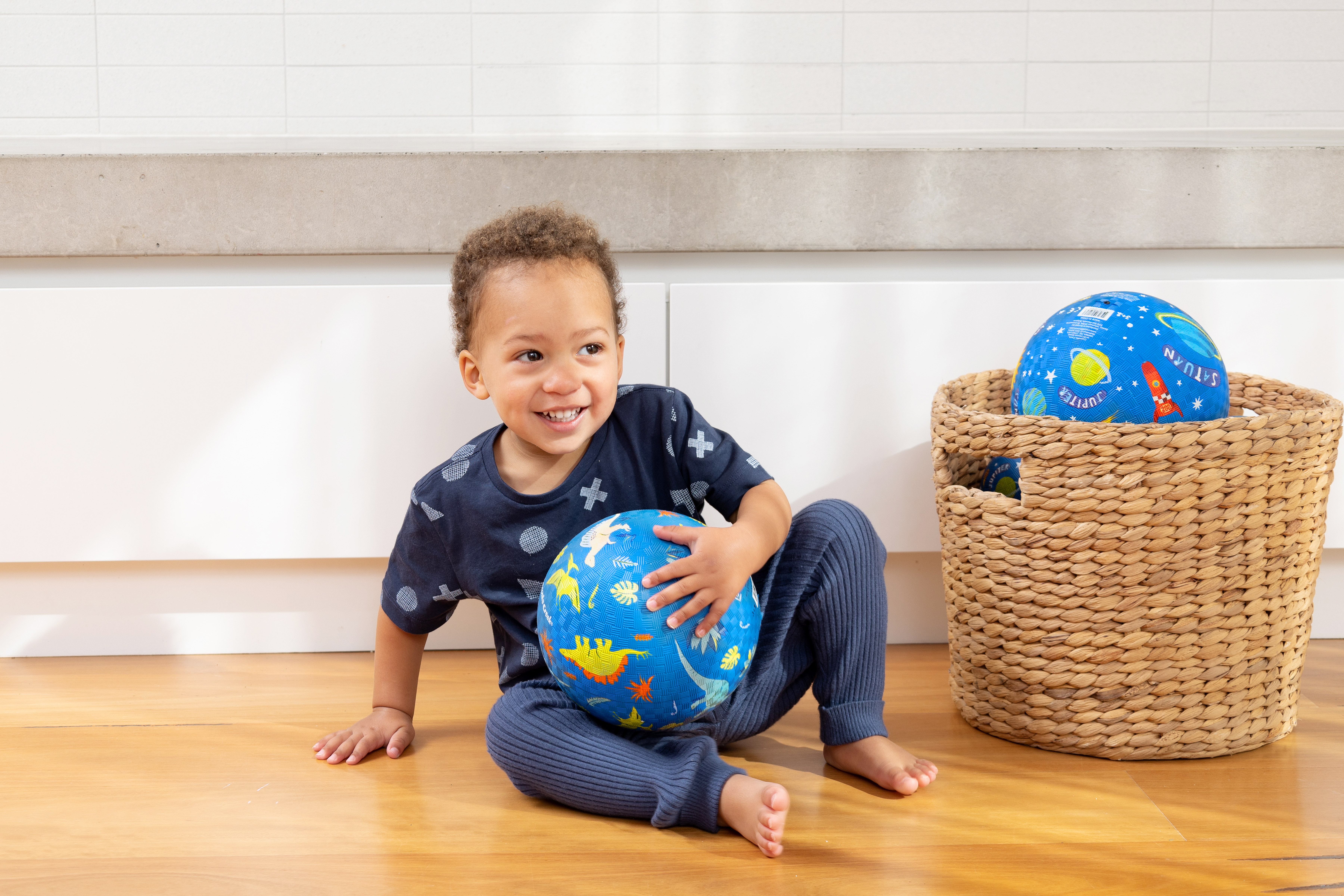 Мяч Crocodile Creek «Динозавры» изготовлен из прочного натурального каучука с текстурированной поверхностью. Не содержит ПВХ и вредных примесей – безопасен для детей.