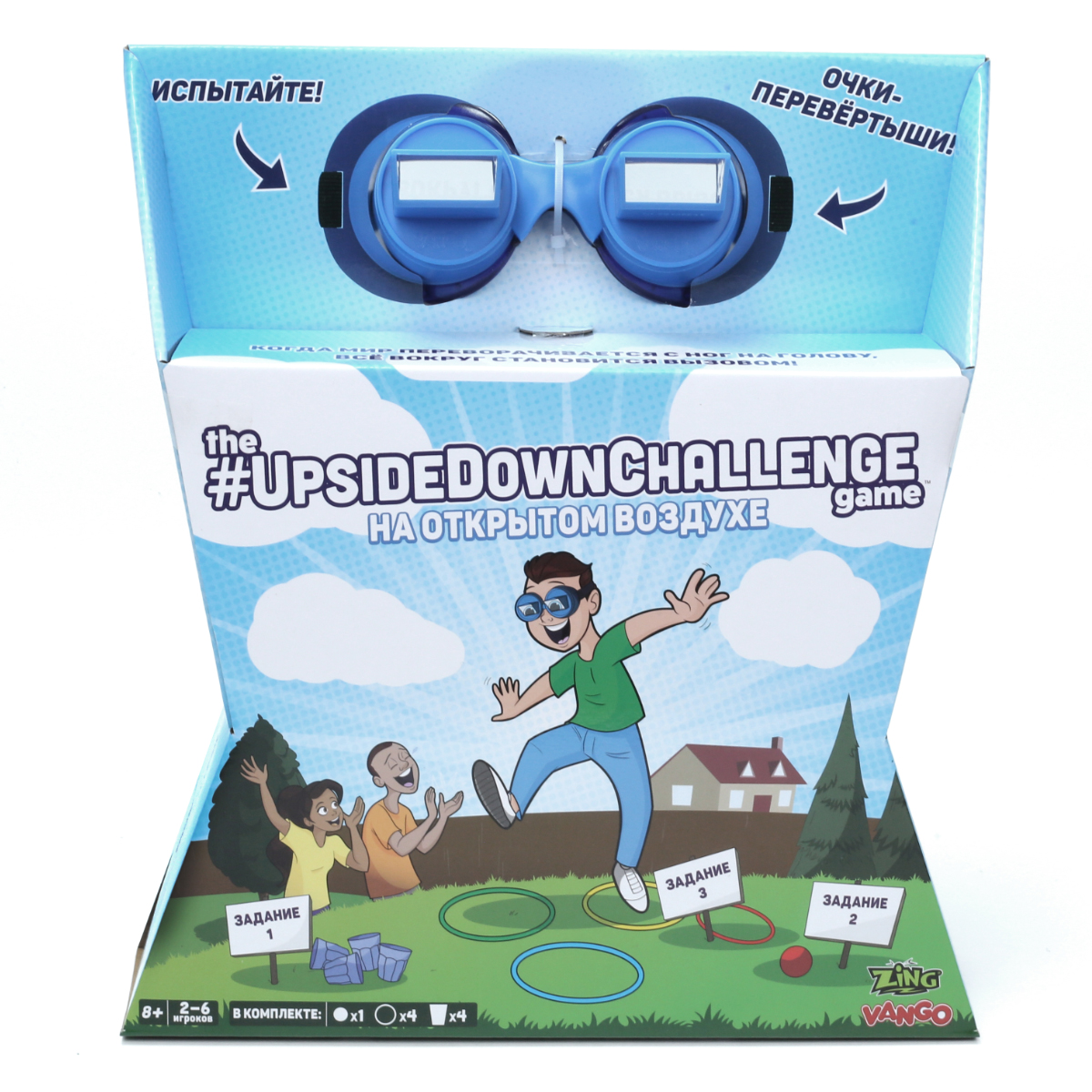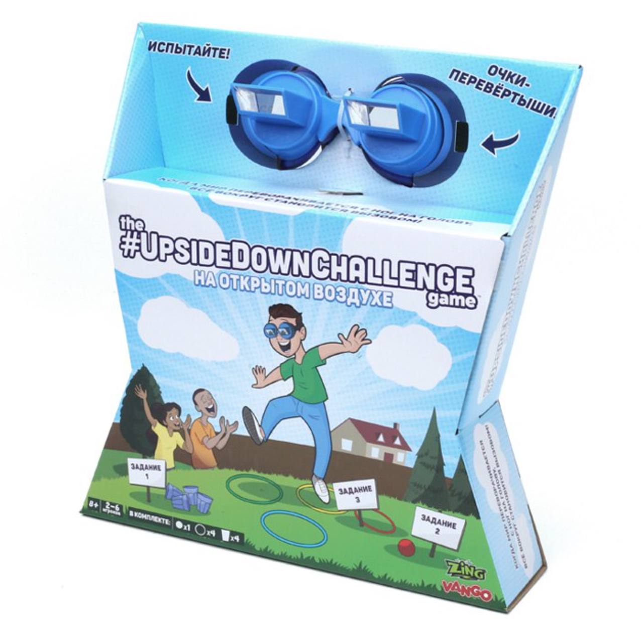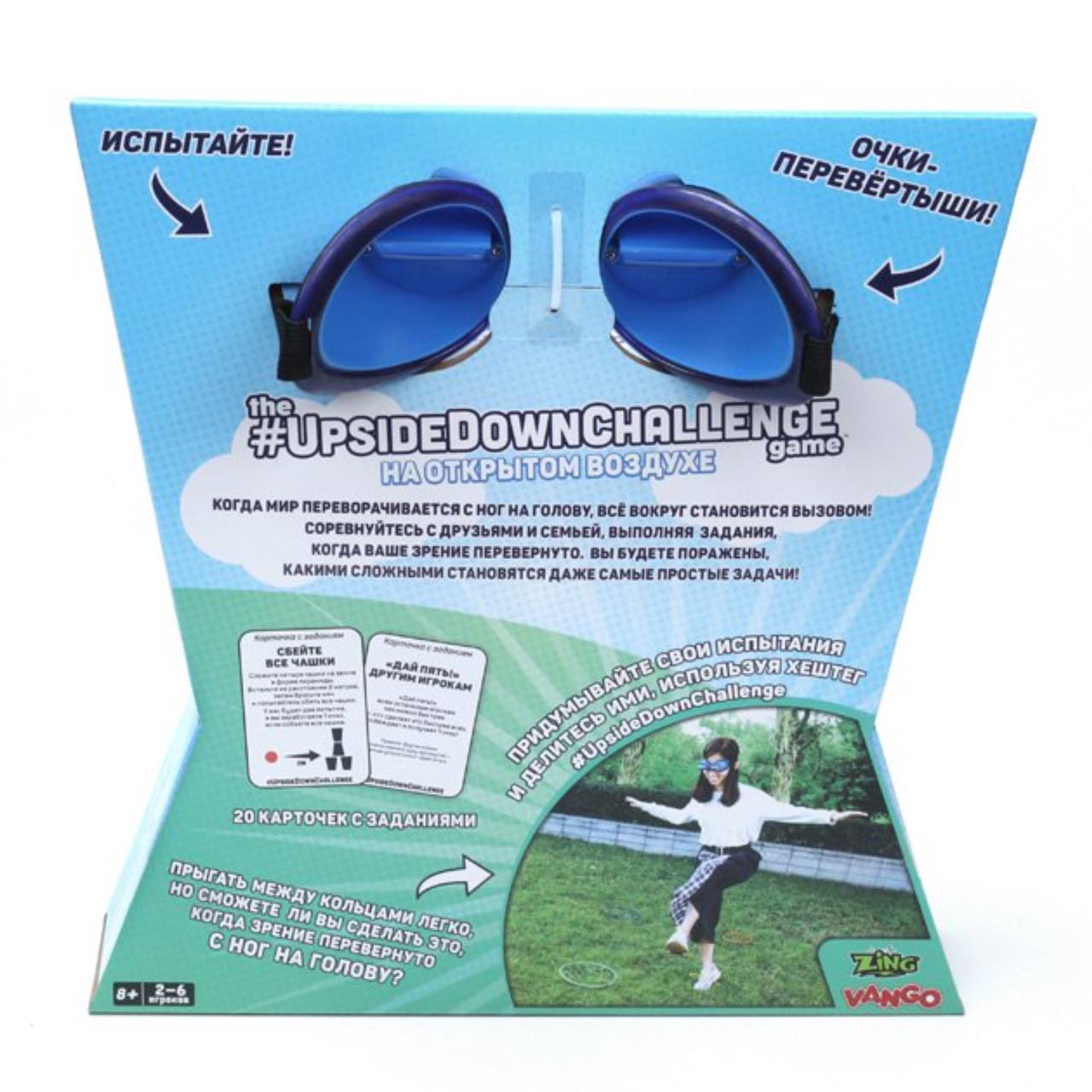Такое веселое времяпрепровождение подходит для взрослых и детей. Это отличное развлечение для семей, дружеских и корпоративных вечеринок. Специальные очки, входящие в комплект, переворачивают картину мира с ног на голову, а любое задание становится вызовом!