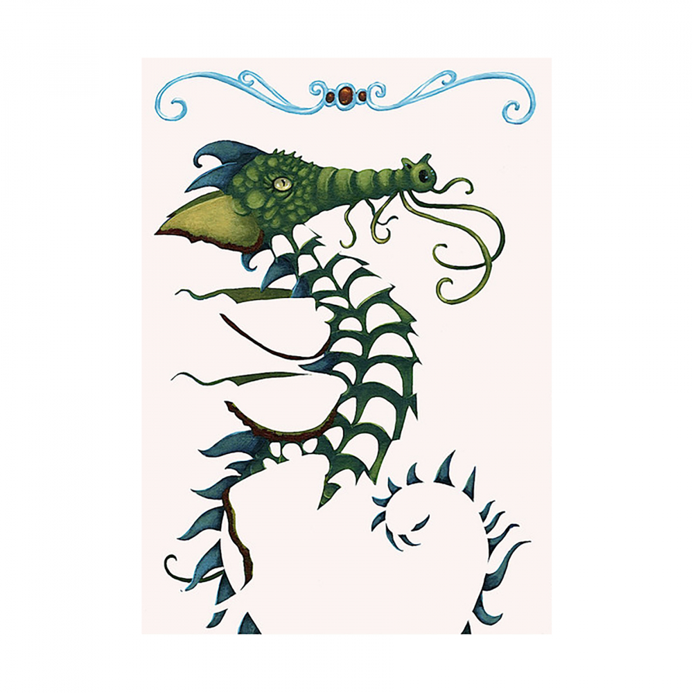 При помощи специальной металлизированной фольги различных цветов ваши дети смогут украсить четыре картинки, на которых изображены яркие сказочные драконы.