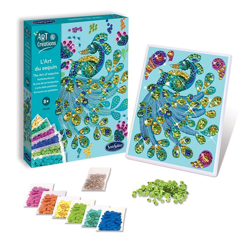 Набор для творчества «Павлин» от Sentosphere – это яркая дизайнерская иллюстрация, которую эффектно можно украсить сияющими стразами и пайетками. В комплекте идет инструкция, но следовать ей совсем необязательно: можно дать свободу фантазии и расположить стразы на свой вкус.