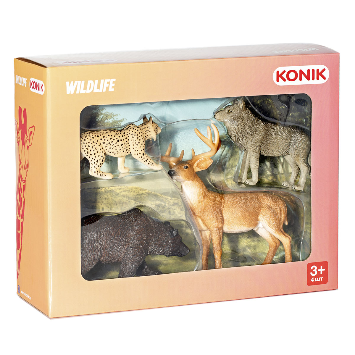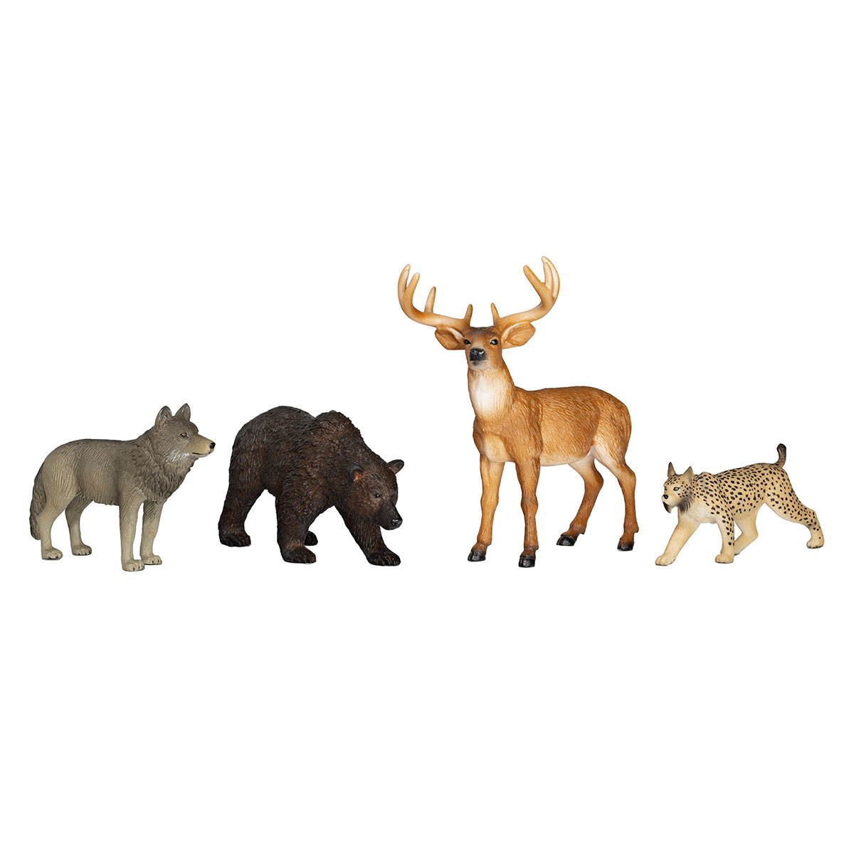 Набор лесных животных животных — это буквально уменьшенная копия животных! В набор входят медведь, олень, рысь и волк. С фигурками можно организовать огромное количество образовательных занятий. Это и погружение в фауну континентов нашей планеты, и сюжетно-ролевые игры, и сказки, и многое-многое другое! Фигурки животных открывают у детей безграничный полёт фантазии!