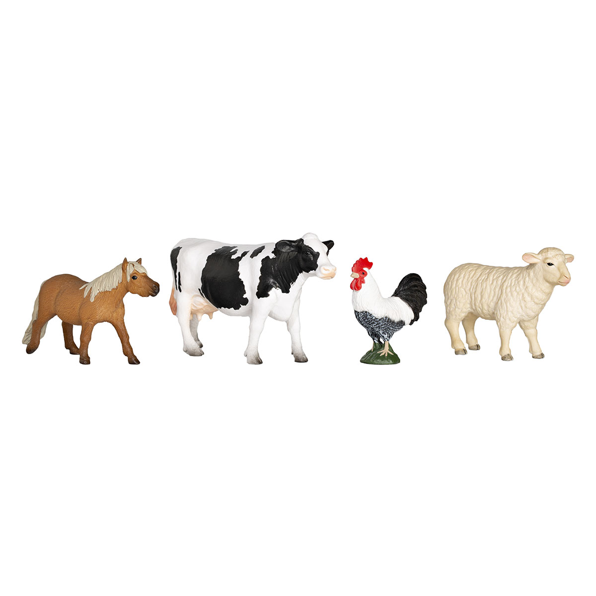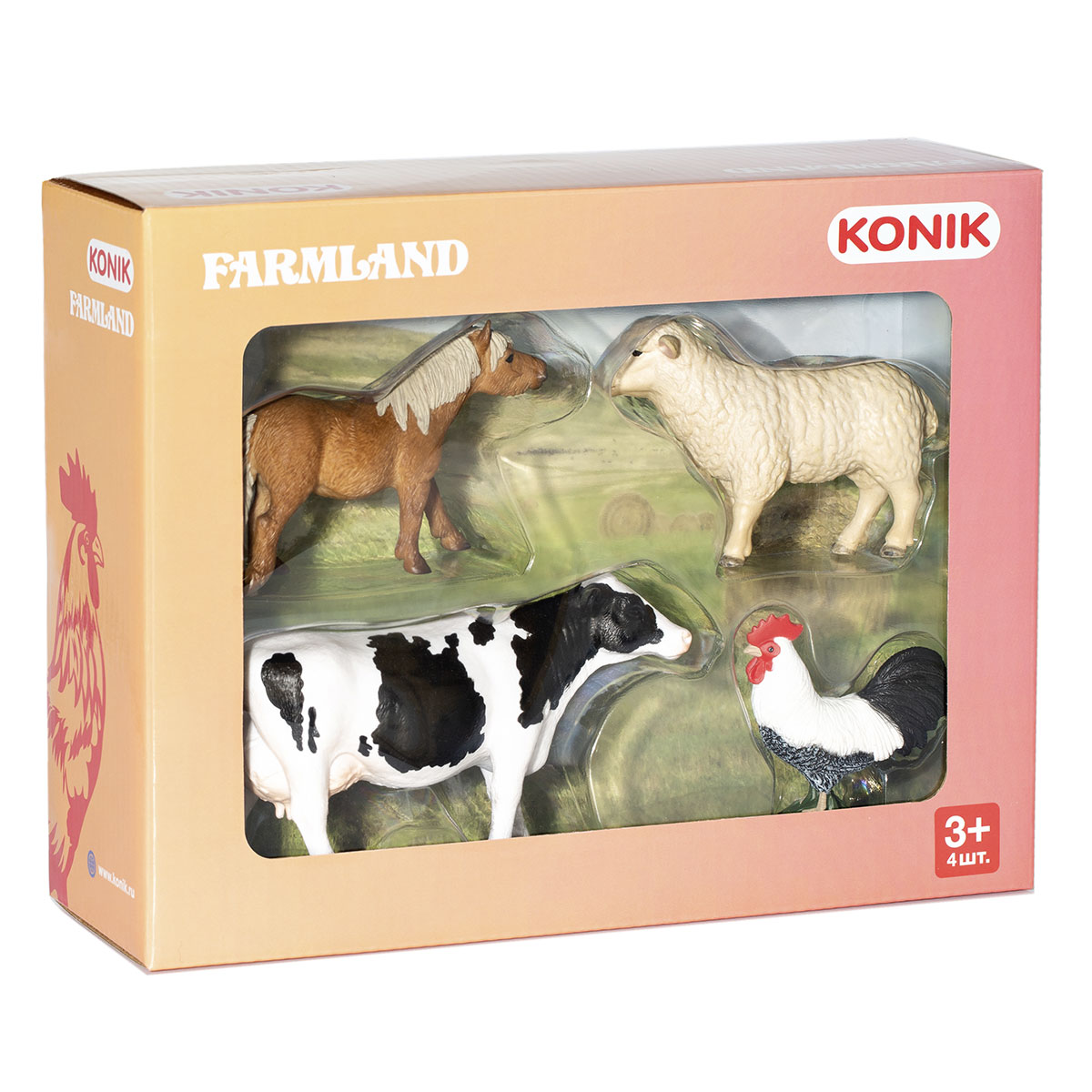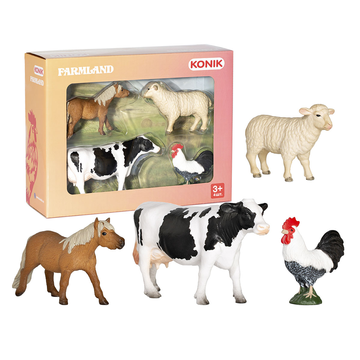 Набор фигурок домашних животных для детей — замечательный подарок для мальчика или девочки на любой праздник, а также это отличная возможность познакомить ребёнка с домашними животными, живущими на ферме. Игровой развивающий набор фигурок содержит 4 предмета: петух, овца, пони, корова. Играя с фигурками-игрушками животных, ребёнок будет развивать мелкую моторику, воображение, фантазию и творческое мышление.