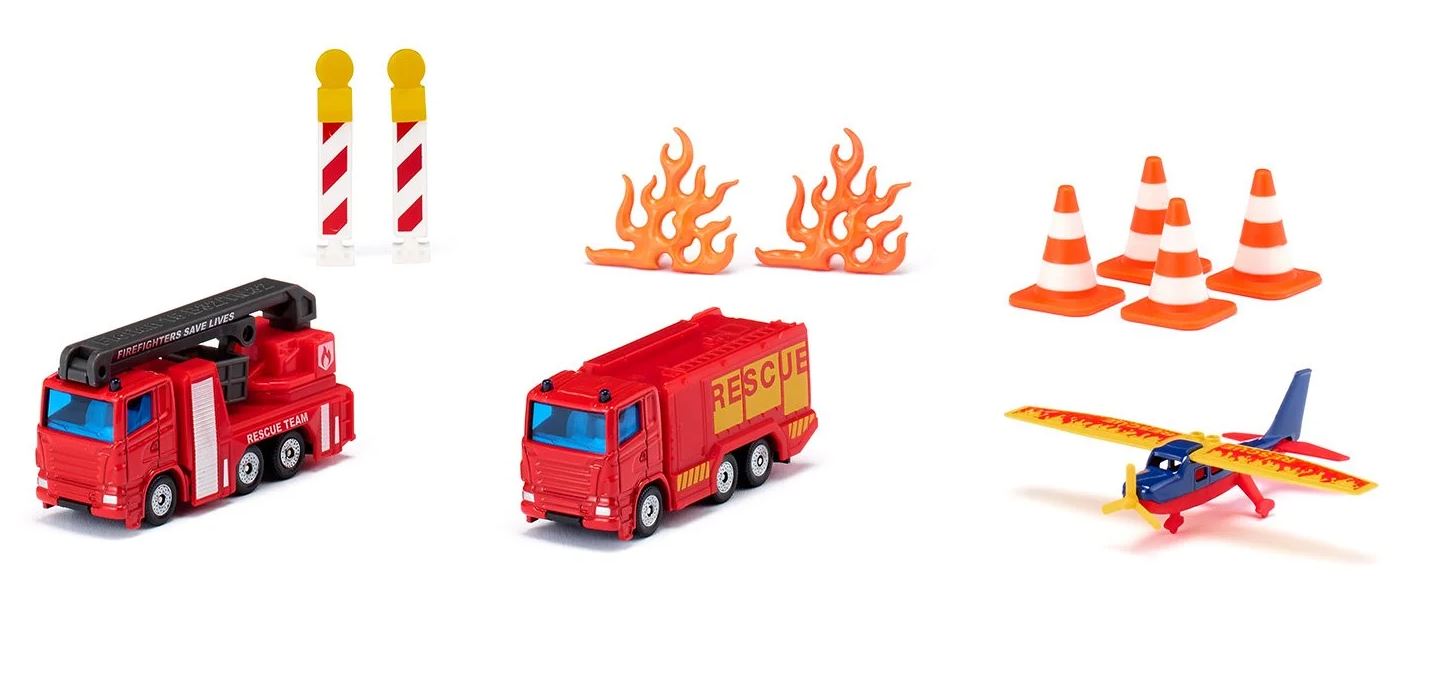 В штаб поступает сигнал бедствия: в больнице пожар! И только ты, юный спасатель, способен так быстро потушить огонь вместе с новым пожарным набором от siku. Ваш храбрец сможет найти в нем грузовик, оснащенный подъемно-спасательной платформой, пожарную машину, которая тут же займется тушением пожара, и самолет для транспортировки людей! Они просто незаменимые помощники человека в таких сложных операциях.