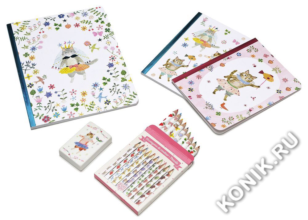 Набор блокнотов Аико из серии канцелярских товаров Lovely Paper от французского производителя Djeco (Джеко) - замечательно подойдет для учебы в школе, а также для рисования или других творческих занятий ребенка. Набор состоит из двух блокнотов с красивыми иллюстрациями на обложке. Один из блокнотов пролинован, отлично подходит для записей, второй блокнот нелинованный, отлично подойдет для рисования и творчества. Каждая страничка блокнотов содержит красивые и нежные небольшие рисунки. В каждом блокноте по 40 листов, бумага - 120 г/м2, корешки украшены переплетом с металлическим блеском, что придает блокнотам более эффектный вид. Размер блокнотов 10,5*15*0,5 см, продаются в прочной прозрачной упаковке. Набор блокнотов Аико прекрасно подойдет в качестве подарка юной ученице или для занятий в детском саду. Серия детских канцелярских товаров Lovely Paper включает в себя красочные блокноты, пеналы, фломастеры и карандаши, цветной скотч, наборы наклеек и другие аксессуары. Изображения на изделиях выполнены в свой