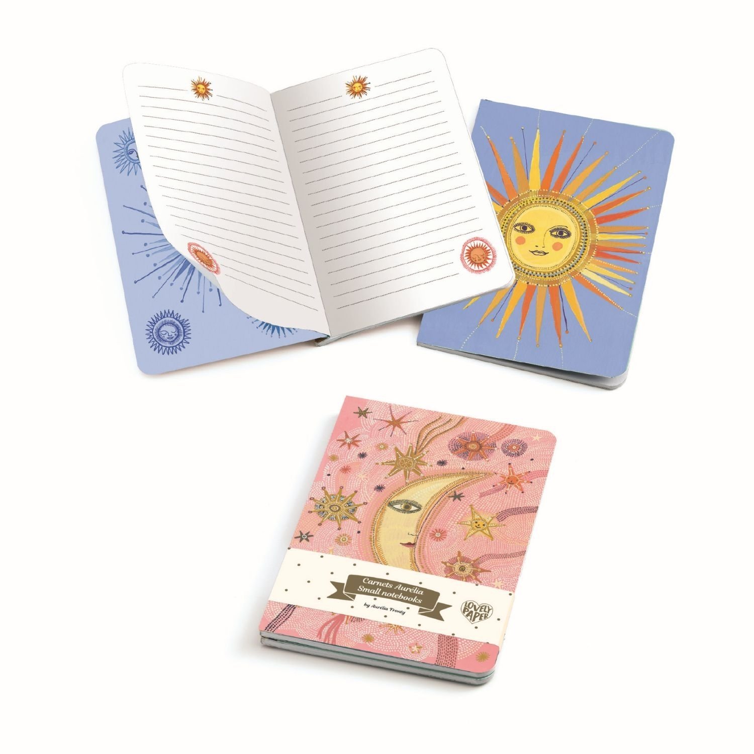 Набор блокнотов Аурелия из серии канцелярских товаров Lovely Paper от французского производителя Djeco (Джеко) - замечательно подойдет для учебы в школе, а также для рисования или других творческих занятий ребенка. Набор состоит из двух блокнотов с красивыми иллюстрациями на обложке. Один из блокнотов пролинован, отлично подходит для записей, второй блокнот нелинованный, отлично подойдет для рисования и творчества. Каждая страничка блокнотов содержит красивые и нежные небольшие рисунки. В каждом блокноте по 40 листов, бумага - 120 г/м2, корешки украшены переплетом с металлическим эффектом, что придает блокнотам более эффектный вид. Размер блокнотов 10,5*15*0,5 см, продаются в прочной прозрачной упаковке. Набор блокнотов Аурелия прекрасно подойдет в качестве подарка юной ученице или для занятий в детском саду. Серия детских канцелярских товаров Lovely Paper включает в себя красочные блокноты, пеналы, фломастеры и карандаши, цветной скотч, наборы наклеек и другие аксессуары. Изображения на изделиях выполнены