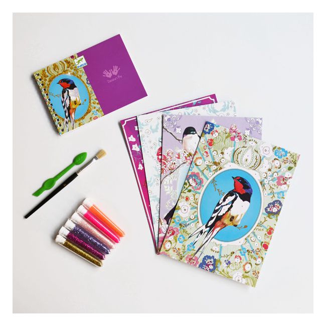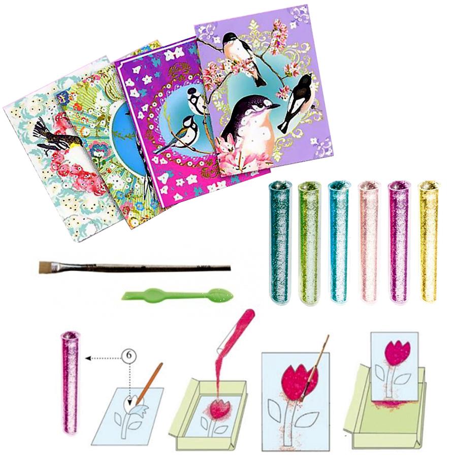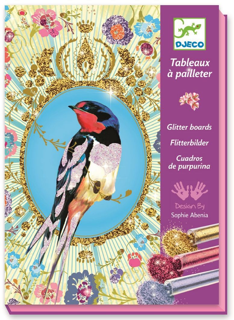 Набор для творчества «Блестящие птицы» от Djeco — это потрясающая раскраска с блёстками. В результате получившимся картинками можно украсить детскую комнату, они будут радовать не только ребёнка, но и всю семью.