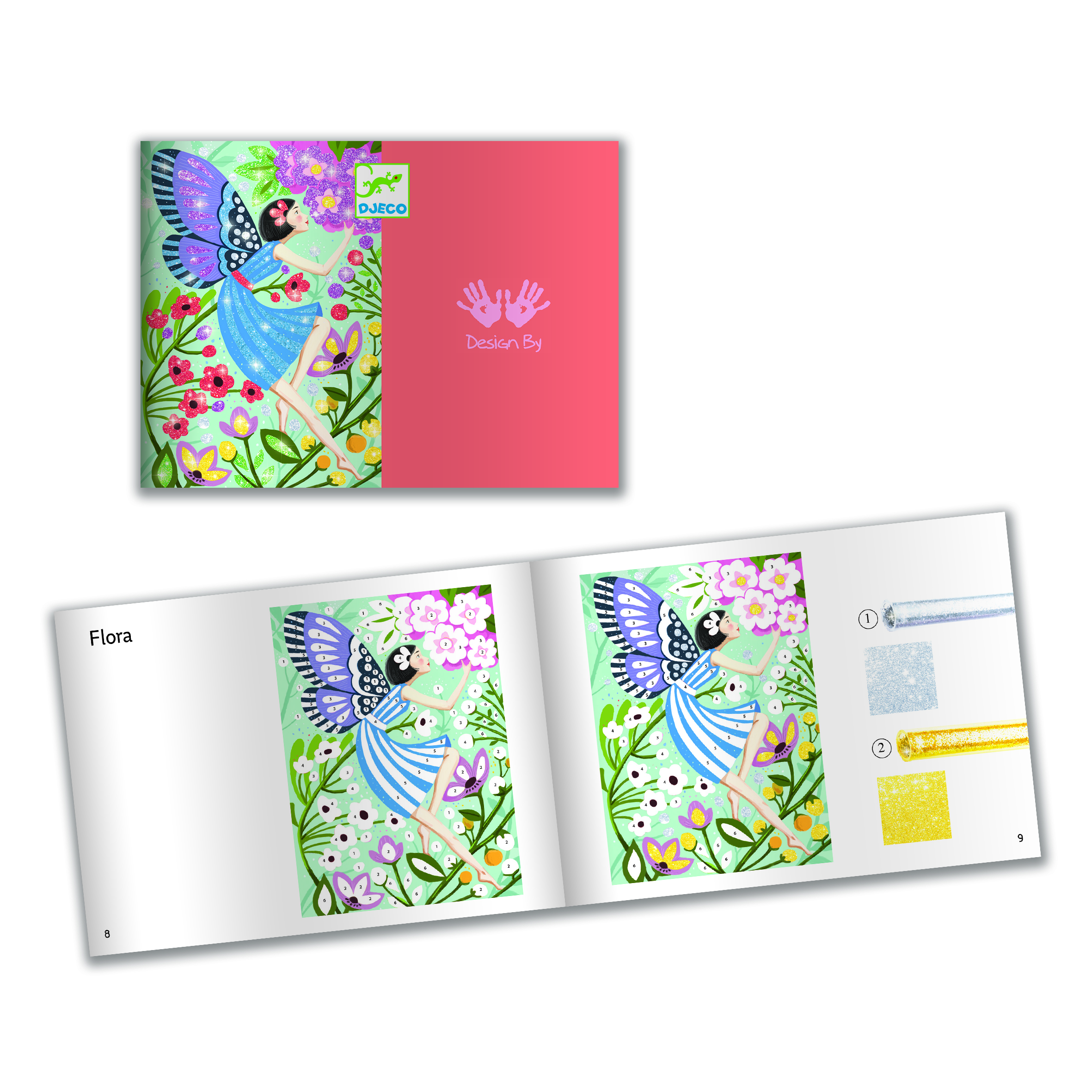 Набор для творчества «Феечки» от французского производителя игрушек Djeco (Джеко) — картинки-раскраски, которые ребёнок должен украсить блёстками. Готовыми картинками можно украсить детскую комнату. В процессе игры развиваются навыки мелкой моторики, воображение и творческие способности.