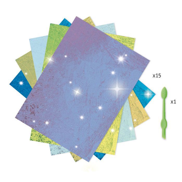 Ребёнок обучится новой технике приложения тонкой маталлизированной фольги на клейкие части картинок. Получившимися творениями можно украсить детскую комнату или же собрать свой творческий альбом.
