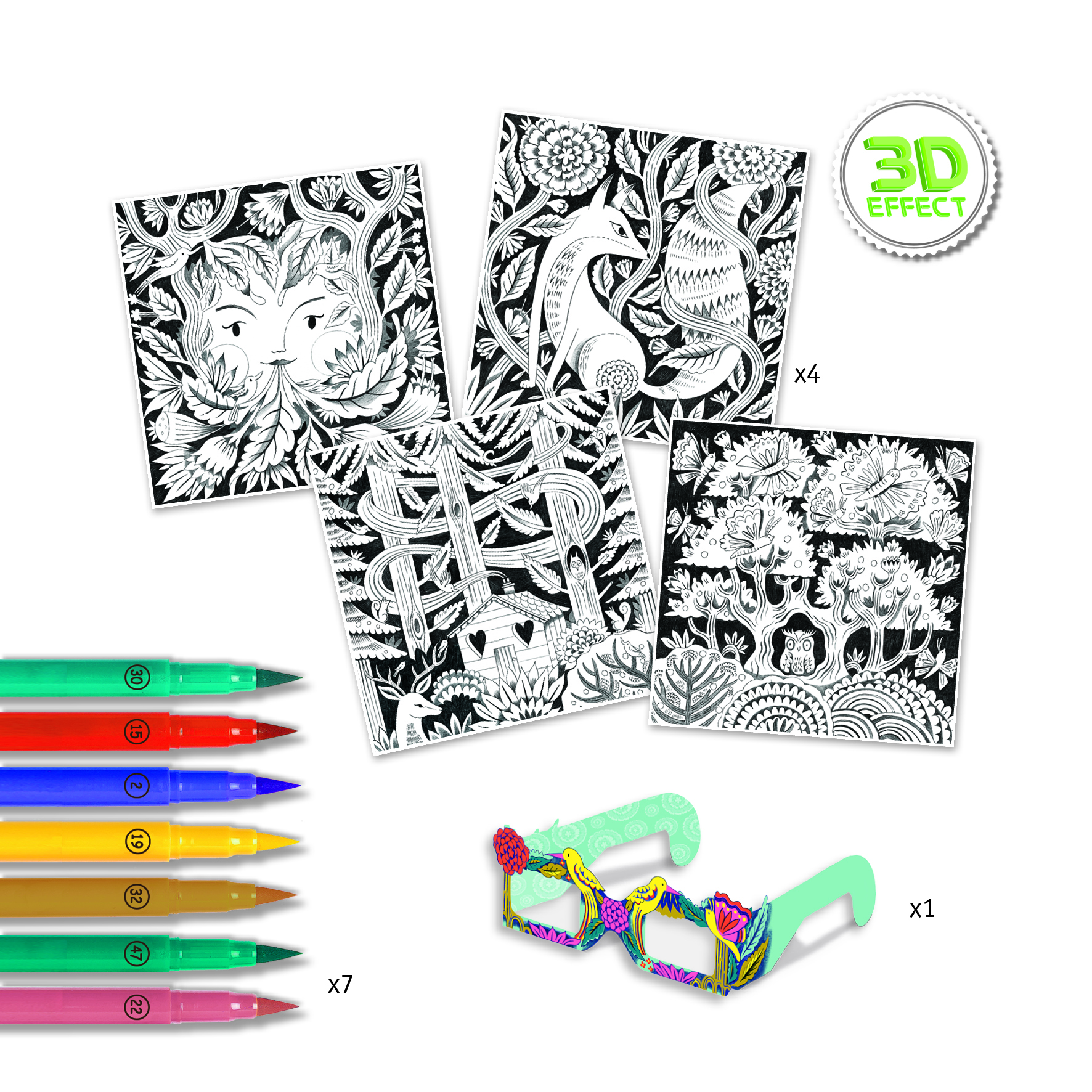 Захватывающий набор красок «Прятки» с 3D-очками для создания ярких и веселых объемных изображений предлагает раскрасить картинки и наблюдать оптический обман! Это будет увлекательным и интересным занятием для каждого ребёнка, ведь он не только научится рисовать, но и сможет картинками украсить детскую комнату и наблюдать за ними через специальные очки.