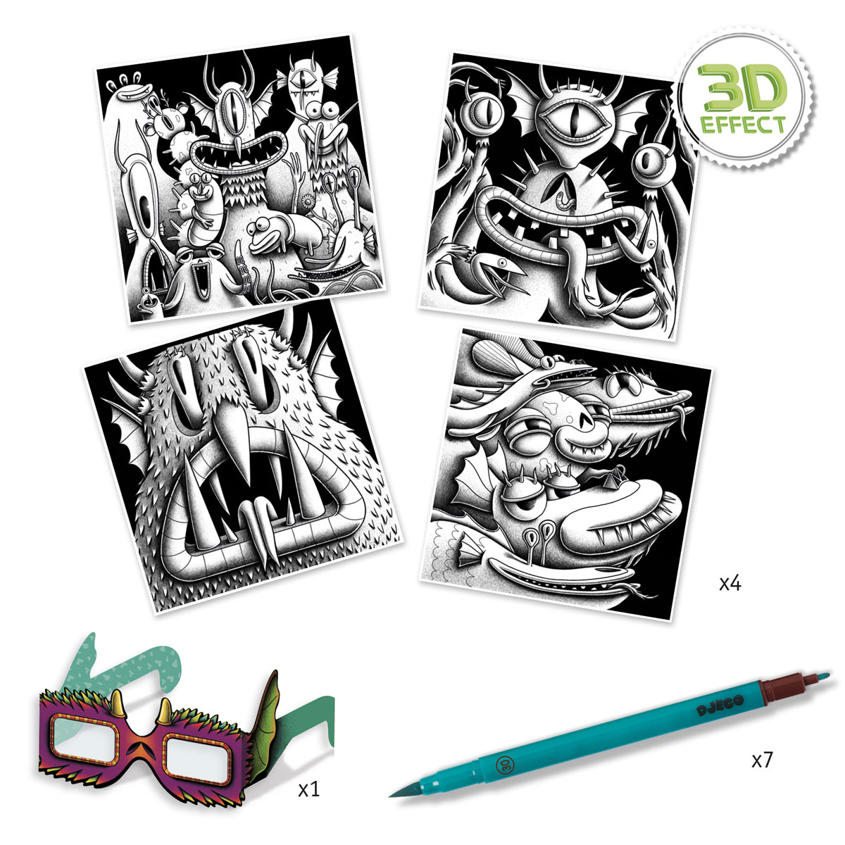 Набор для творчества «Вибли-Вобли» от французского производителя игрушек Djecо - это захватывающая детская раскраска с 3D-очками, которая позволяет создать красочные и веселые 3D-изображения, погрузив ребёнка в творческий процесс и одновременно развивая его креативность и усидчивость.