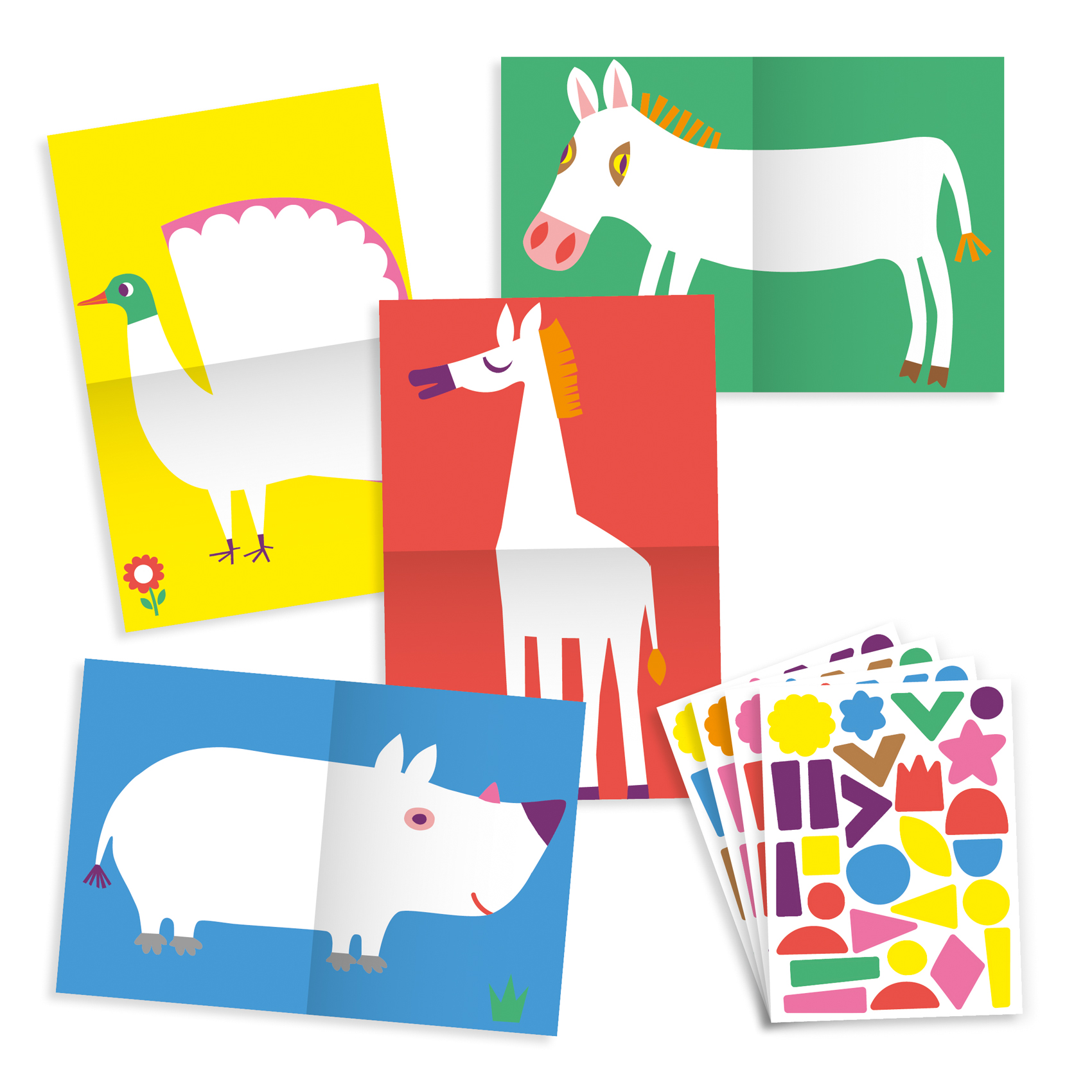 Набор «Одень животных» для создания аппликаций, в котором необходимо украсить картинки животных наклейками. Готовыми поделками можно украсить детскую комнату.