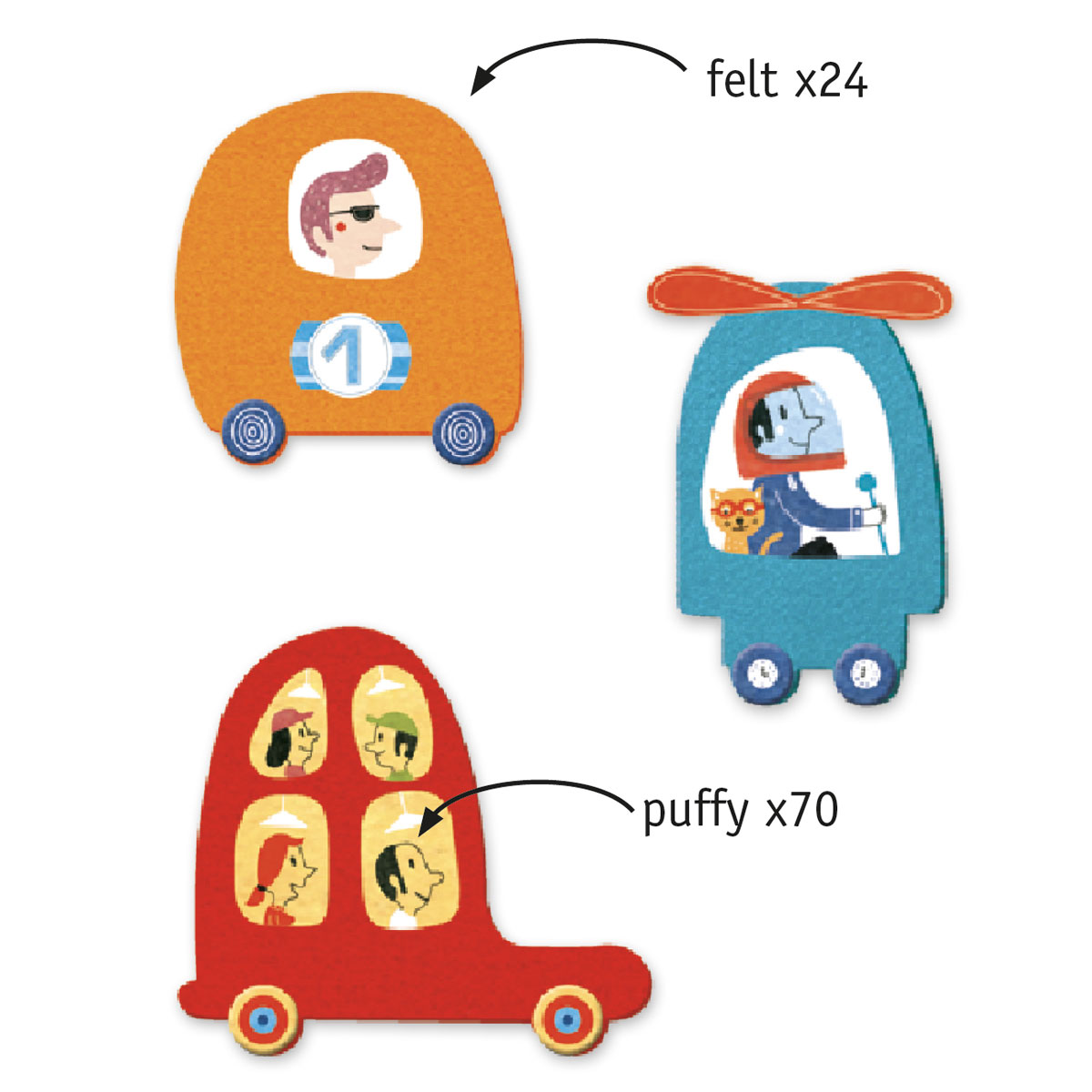 24 формы автомобилей из войлока;