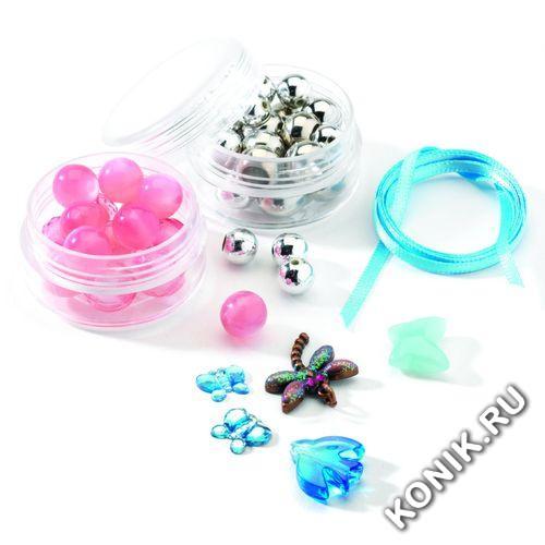 Используя разноцветные бусинки, бабочки и ленточки юная мастерица будет с удовольствием создавать красивые браслеты, подвески и резиночки.