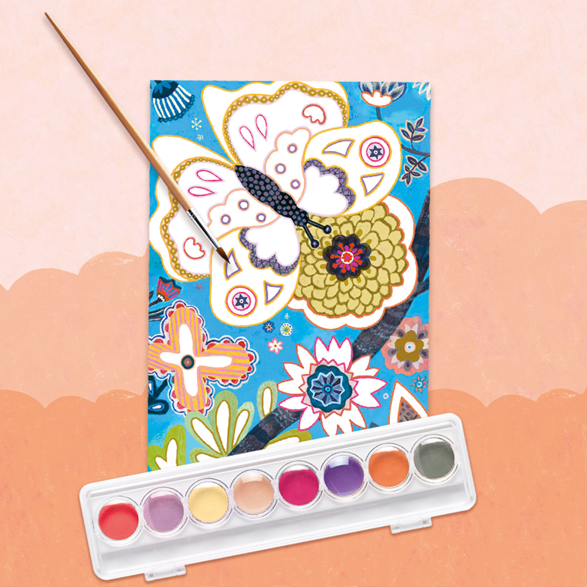 раскраска (1 картина для раскрашивания, краски с кисточкой);