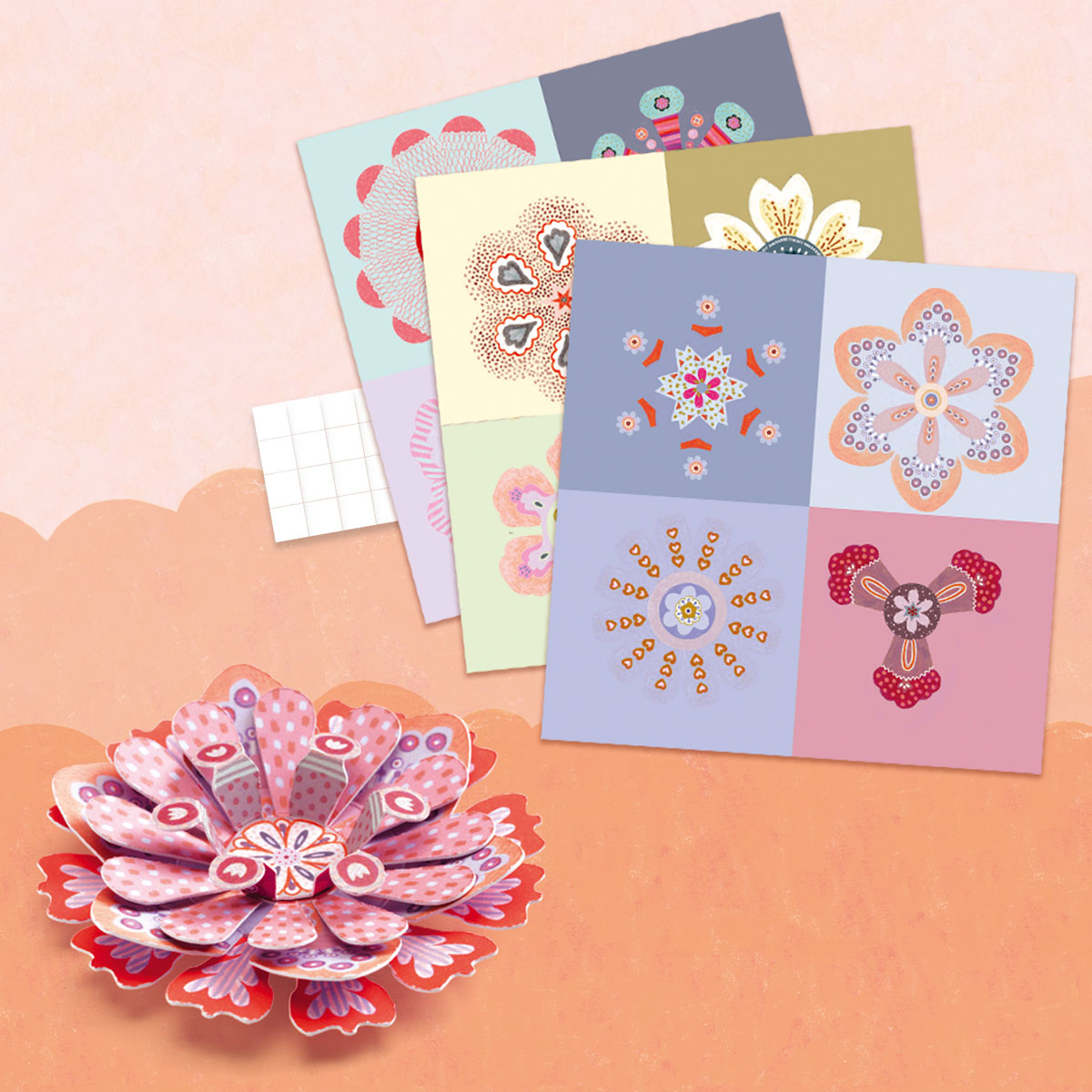 объемный конструктор (3 листа с деталями для создания объемных фигур, 1 лист с двухсторонним скотчем);