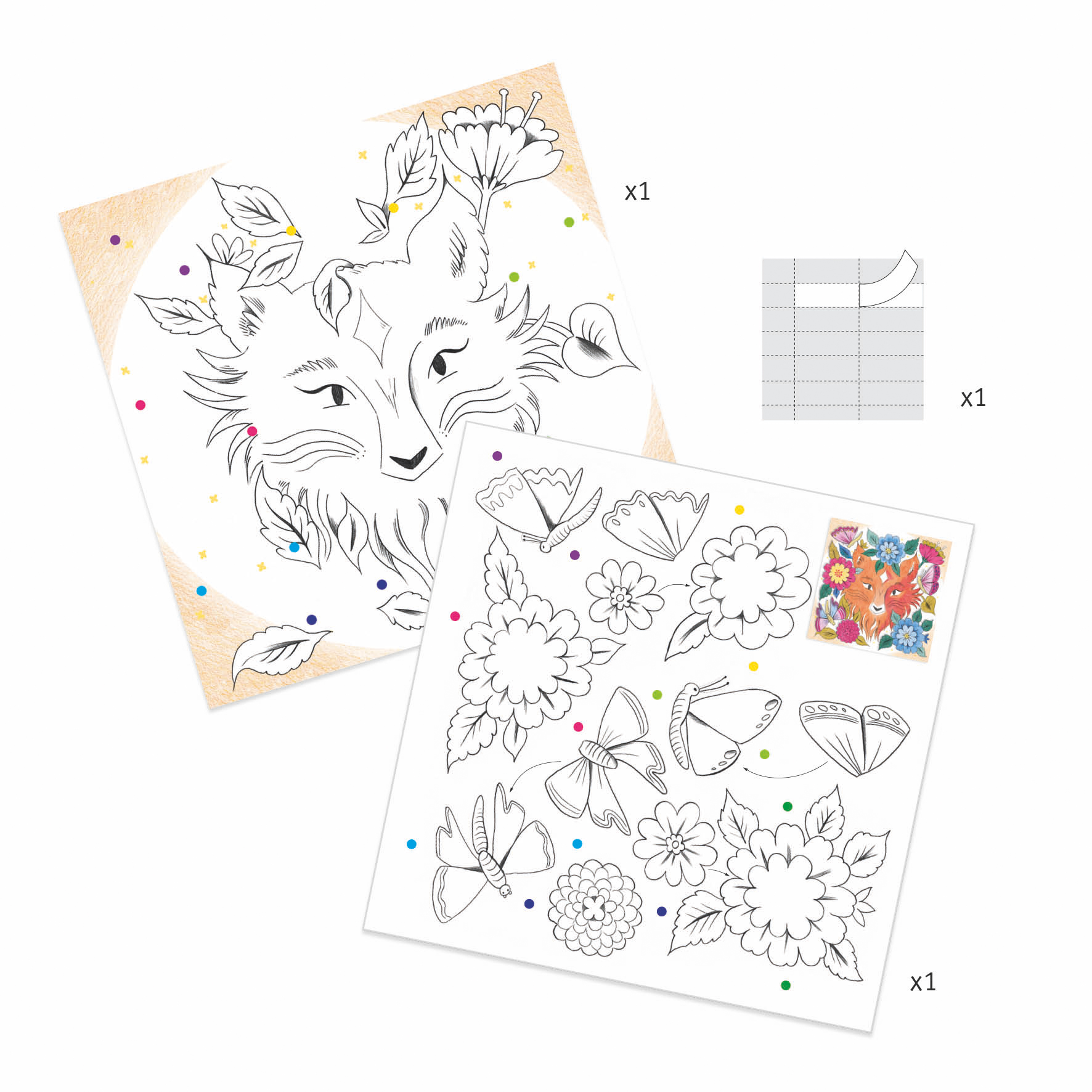 Набор для творчества «Сказка» от французского производителя игрушек Djeco (Джеко) для раскрашивания лесных персонажей. Готовые картинки необходимо украсить элементами декора — цветами. Художества, сделанные своими руками, станут отличным интерьерным решением для детской комнаты.