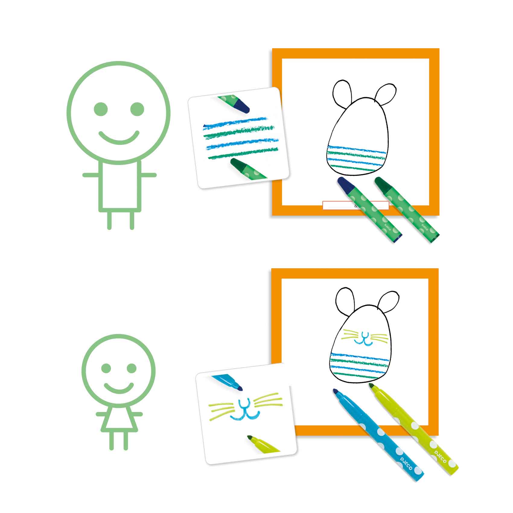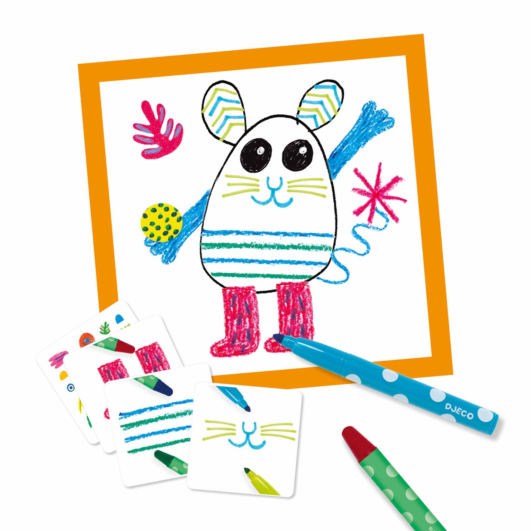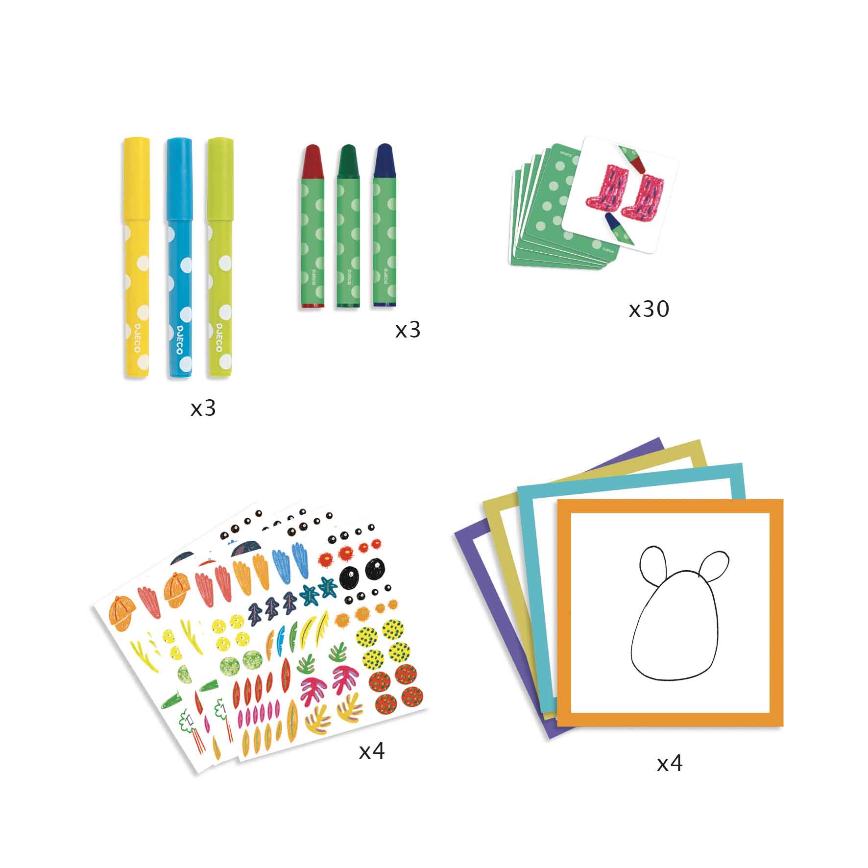 Набор для рисования «Забавные животные» от французского производителя игрушек Djeco (Джеко) — это коробочка со всем необходимым для детского творчества. Малышу предстоит дорисовать животных на специальных карточках и украсить получившиеся иллюстрации наклейками и прочим декором. В процессе игры развиваются навыки мелкой моторики и творческие способности, а также формируется хорошее воображение и эстетический вкус ребёнка.