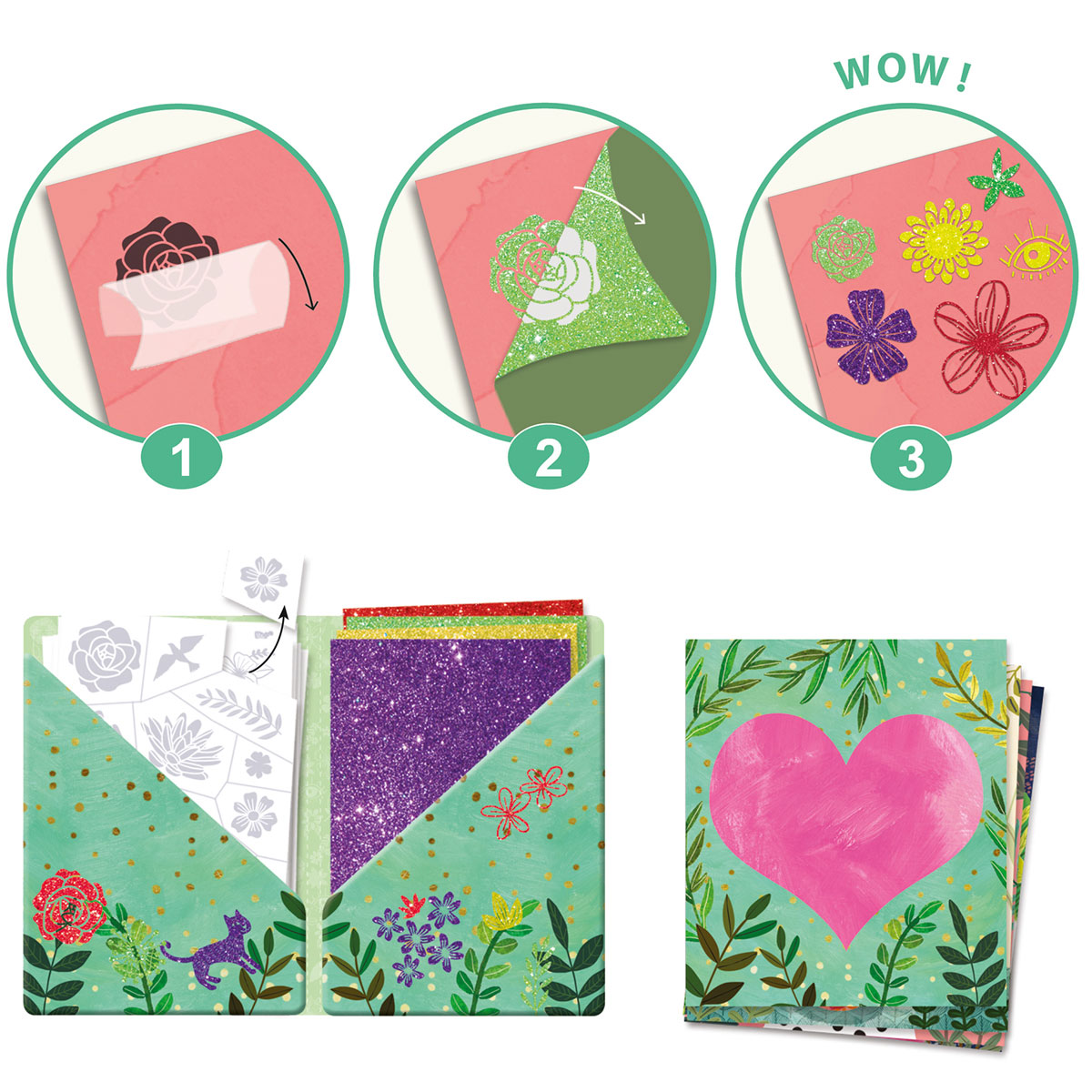 Набор для творчества «Лепестки» от французского бренда Djeco позволит ребёнку дать волю фантазии. Ему предлагается украсить карточки с изображениями переводными картинками с эффектом блесток. Получившиеся картинки можно использовать как закладки для книг, так и украсить ими детскую комнату.