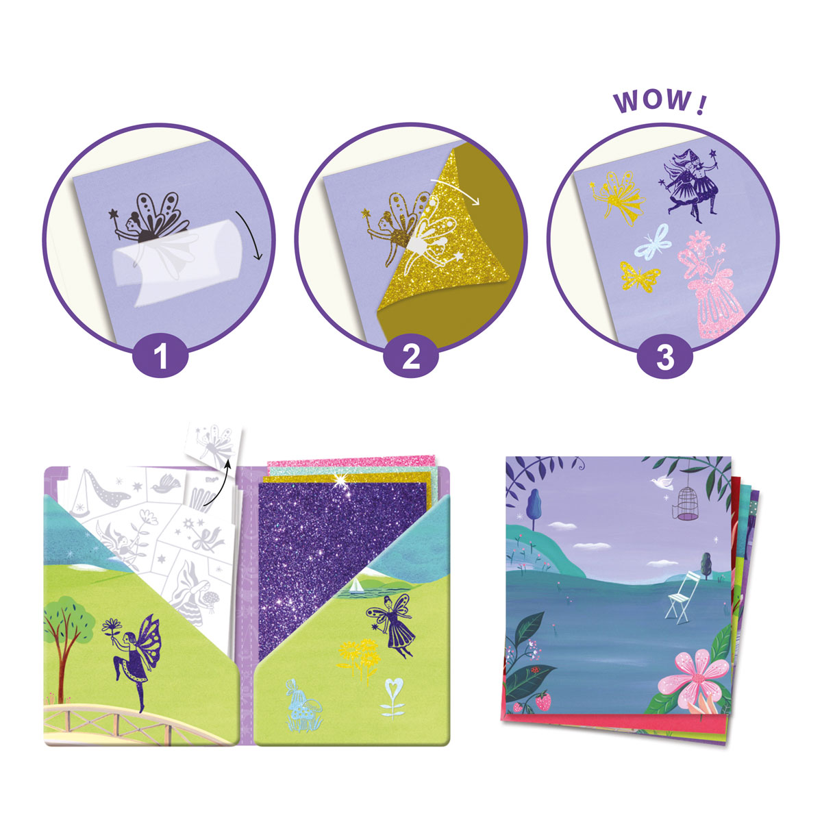 Набор для творчества «Сказочная страна» от французского бренда Djeco унесёт ребёнка в мир волшебства и фантазии. Ему предлагается украсить карточки с изображениями переводными картинками с эффектом «блёстки». Приобретая цвет и блеск, фигурки становятся более объемными и завораживающими, а получившиеся картинки можно использовать как закладки для книг, так и украсить ими детскую комнату.