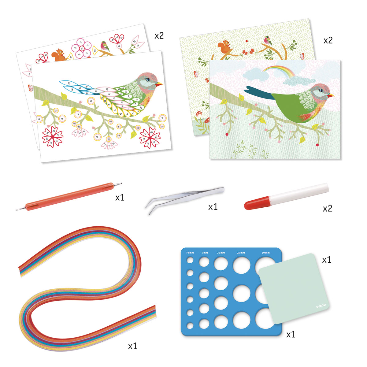 Набор для творчества «Птички» от французского бренда Djeco предлагает малышам познакомиться с техникой квиллинга и придать картинкам объем с помощью скрученных бумажных полосок. Ребёнок сможет создать трехмерные произведения искусства и удивить получившимися шедеврами своих друзей.