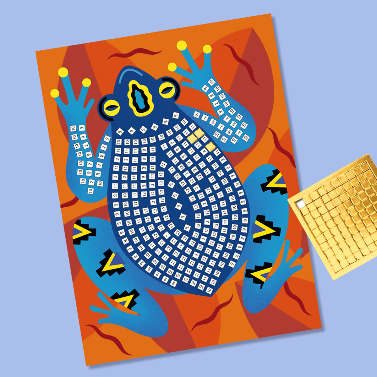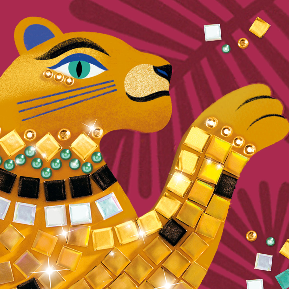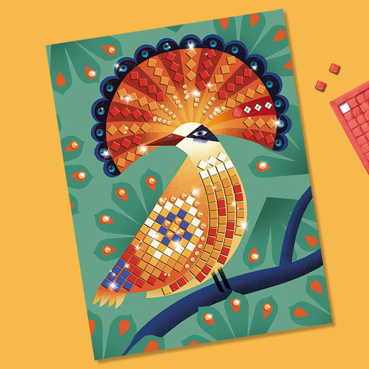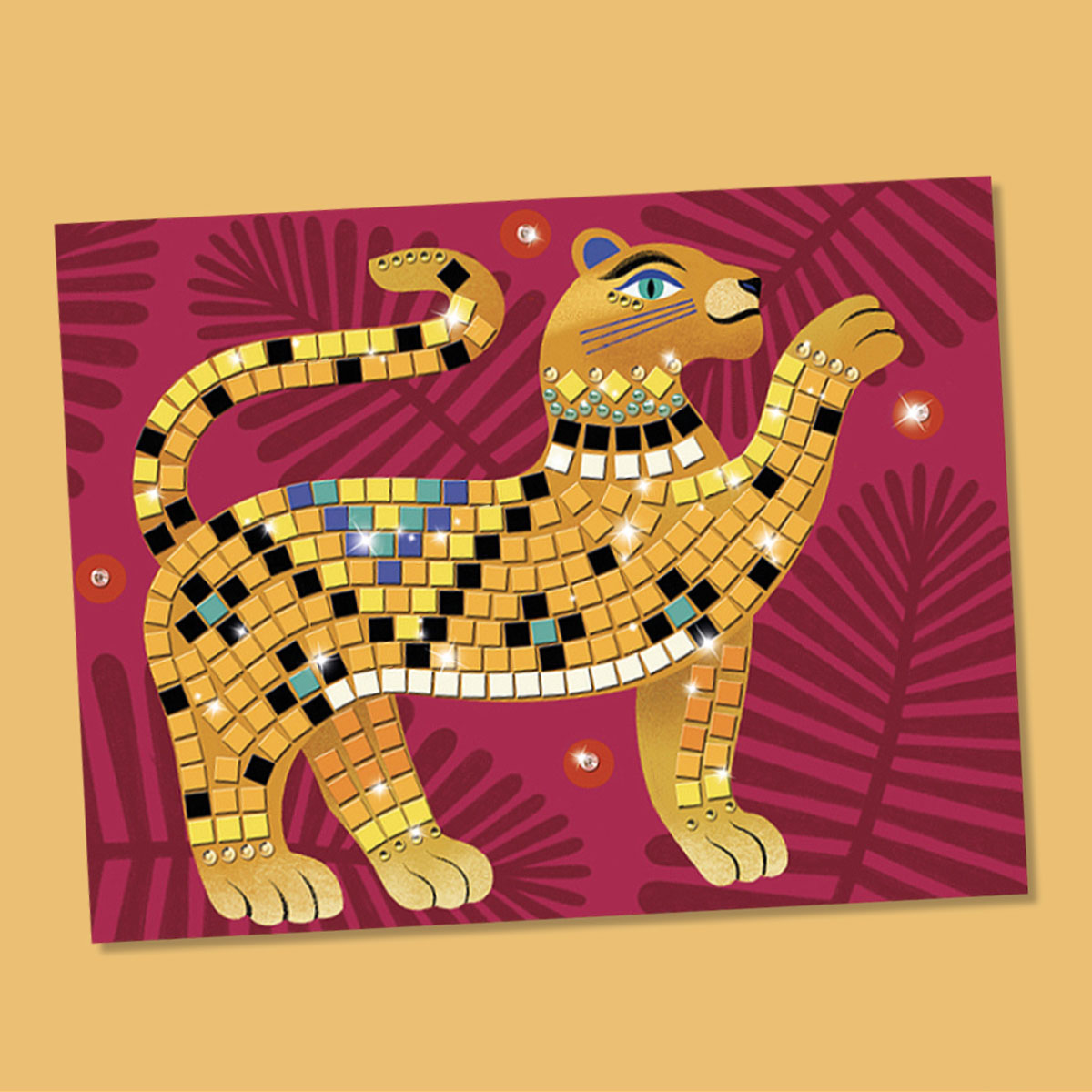 Мозаичный набор «В джунглях» от бренда Djeco развивает у ребёнка фантазию и творческие способности, учит малыша внимательности и усидчивости. Детям предлагается следовать цветовой кодировке, указанной на листах, и наклеивать самоклеющиеся стразы и цветные квадратики.