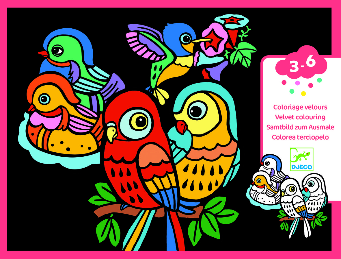 Некоторые части картинок покрыты бархатом, что помогает не выйти за края изображения, благодаря этому рисунки получатся яркими и аккуратными.