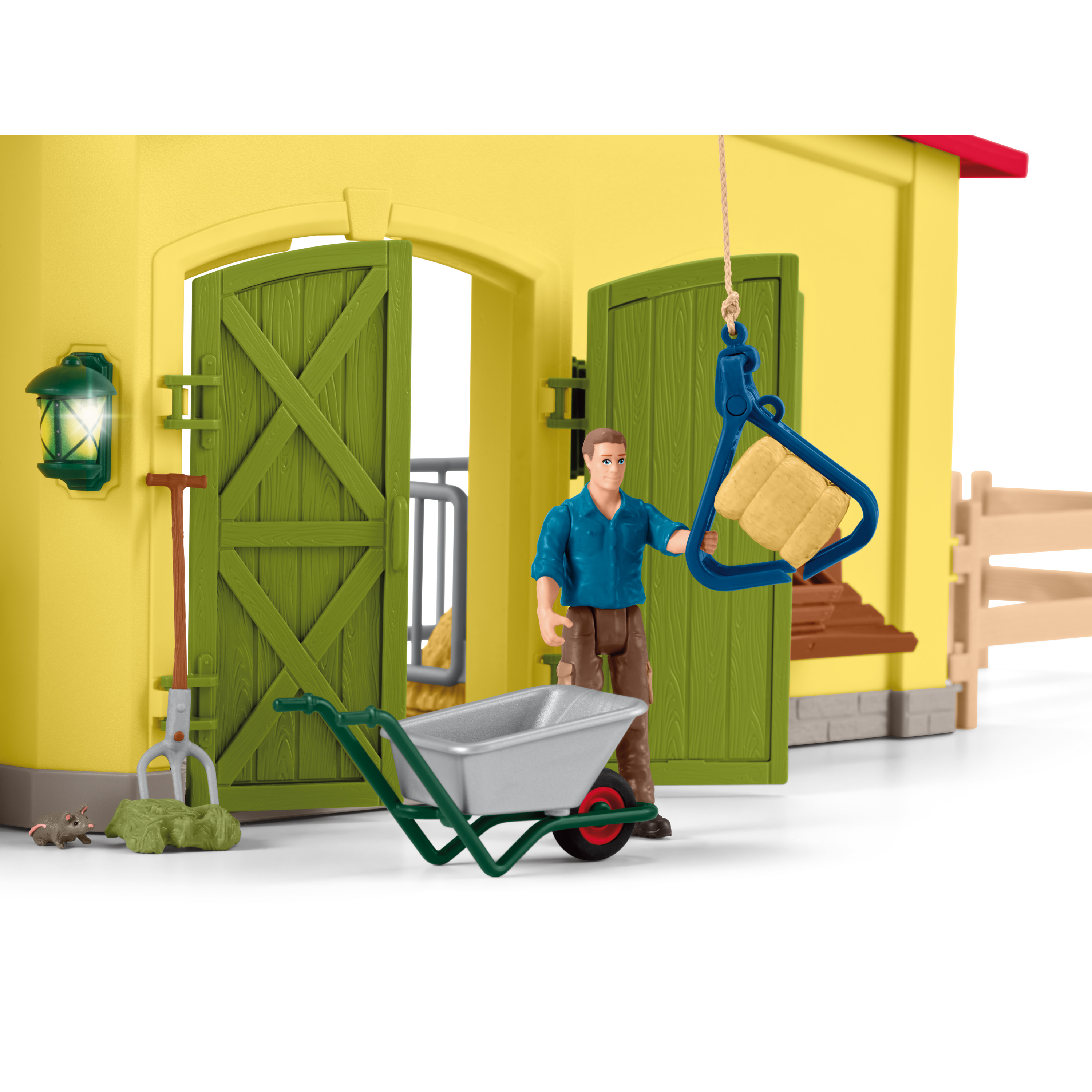 С этим набором ребенок сможет создать собственную ферму, где будут жить и работать различные животные. В наборе есть всё необходимое: здание фермы с постройками, фигурки людей и животных, а также множество аксессуаров для ухода за животными.