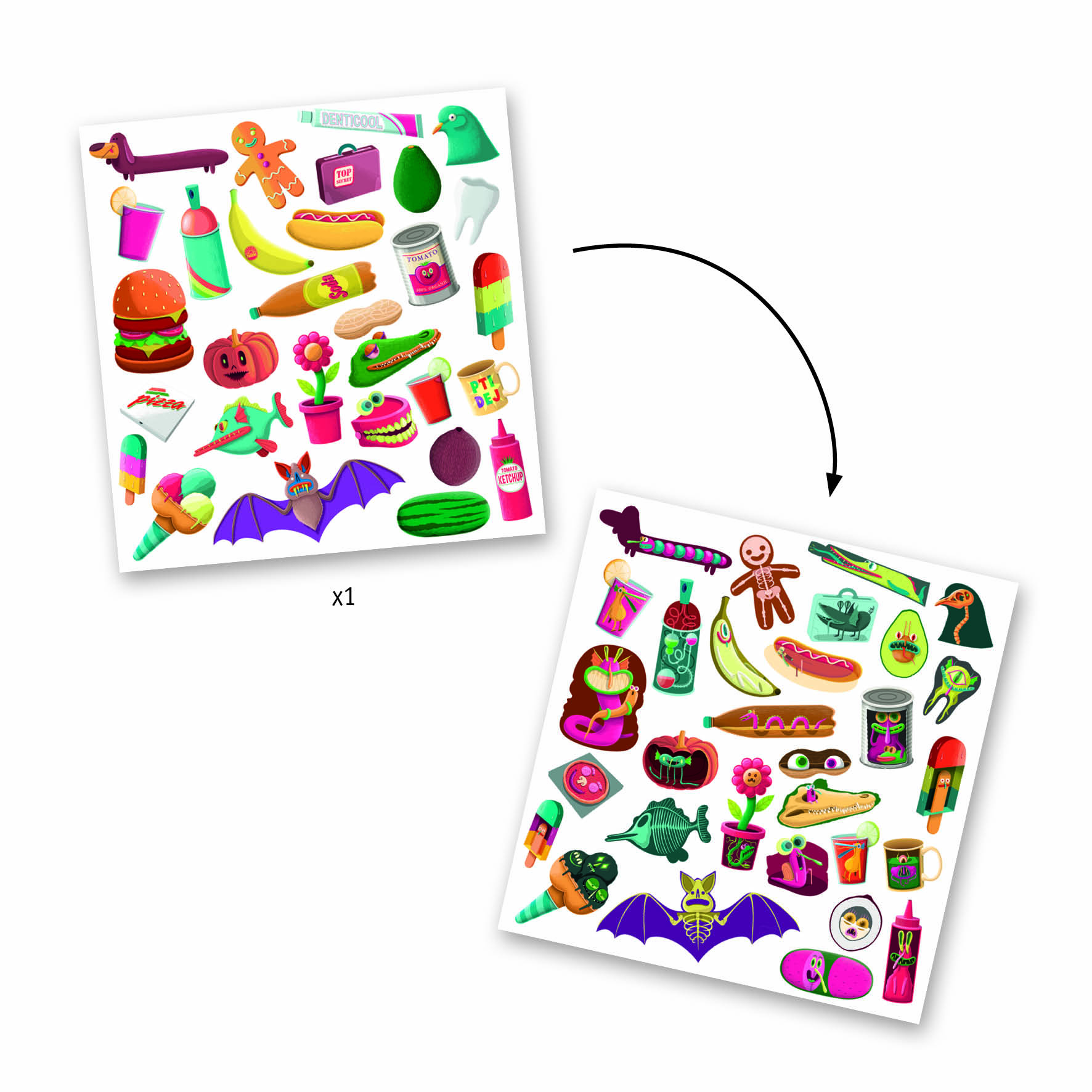 Набор наклеек «По пути» от французского бренда Djeco (Джеко) — это яркая сборка красочных и необычных стикеров, которые меняют картинку в зависимости от угла обзора. С помощью них можно красиво украсить тетради, альбомы или даже сделать частью интерьера детской комнаты.